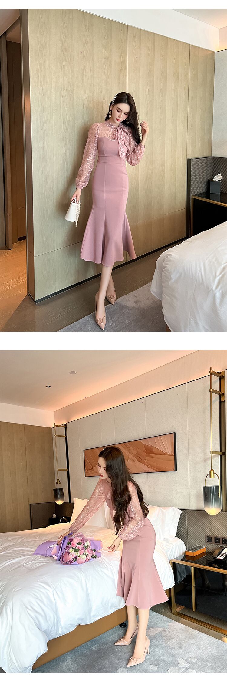 レース 大人ガーリー スウィート キュート カジュアル スプリング 春物 オータム 秋物 ドレス スリム MingJieBiHuo58175732869