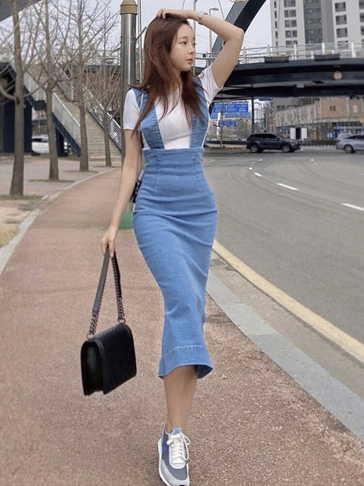 ブルー カジュアル エレガント オータム 秋物 スカート MingJieBiHuo70873989748