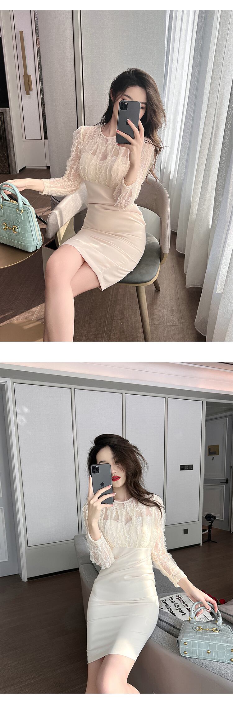 ロング シフォン レース 長袖 ビンテージ MingJieBiHuo65339706613