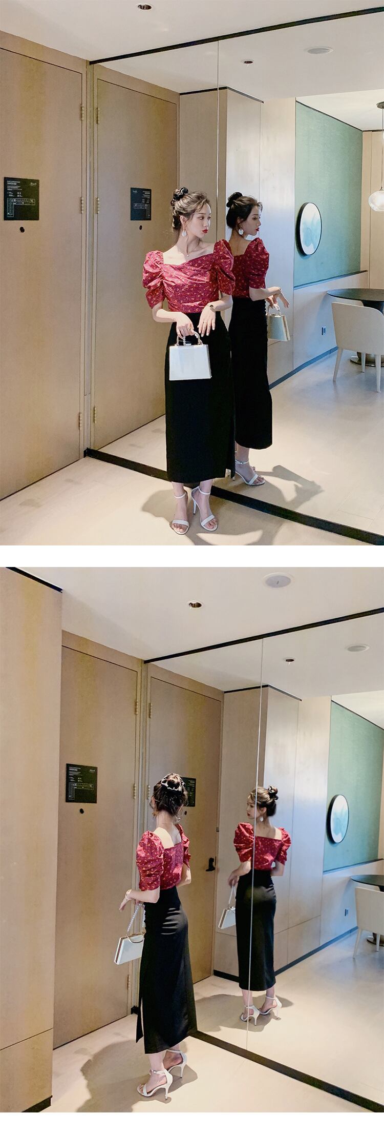 レッド サマー 夏物 スカート ビンテージ 会社 学校 通勤や通学にも MingJieBiHuo75459465851