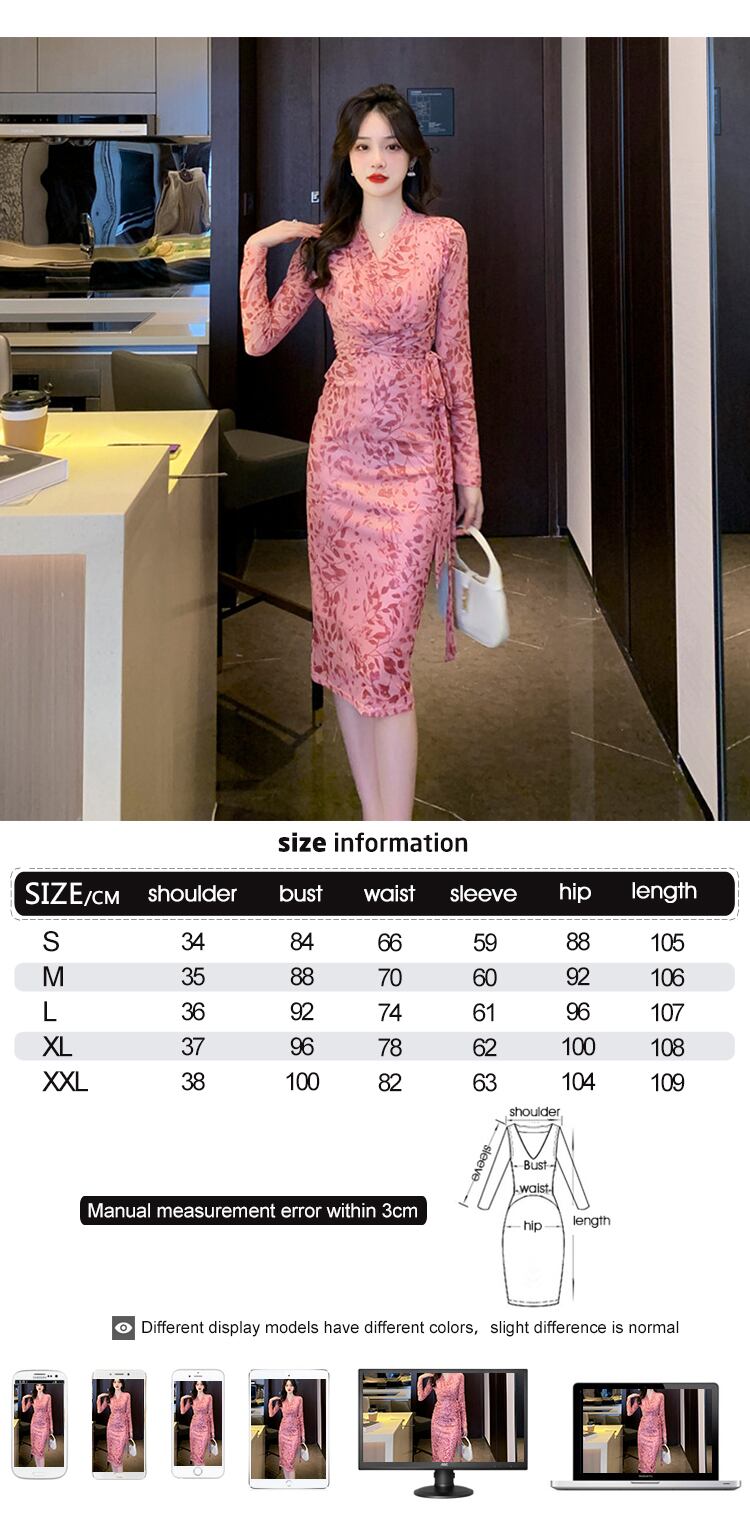 ピンク ストリート 大人ガーリー スウィート キュート カジュアル 花柄 Vネック スリム MingJieBiHuo88541845696