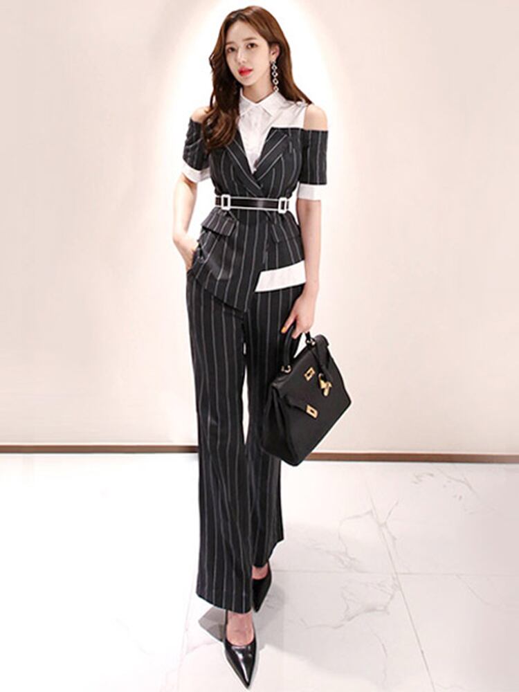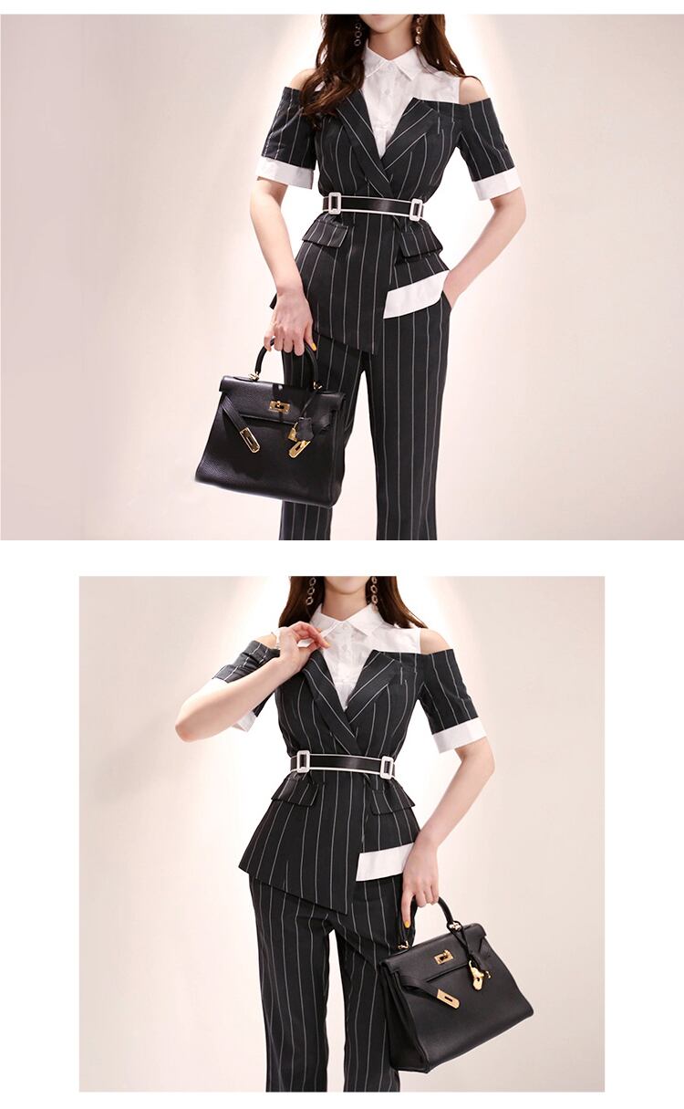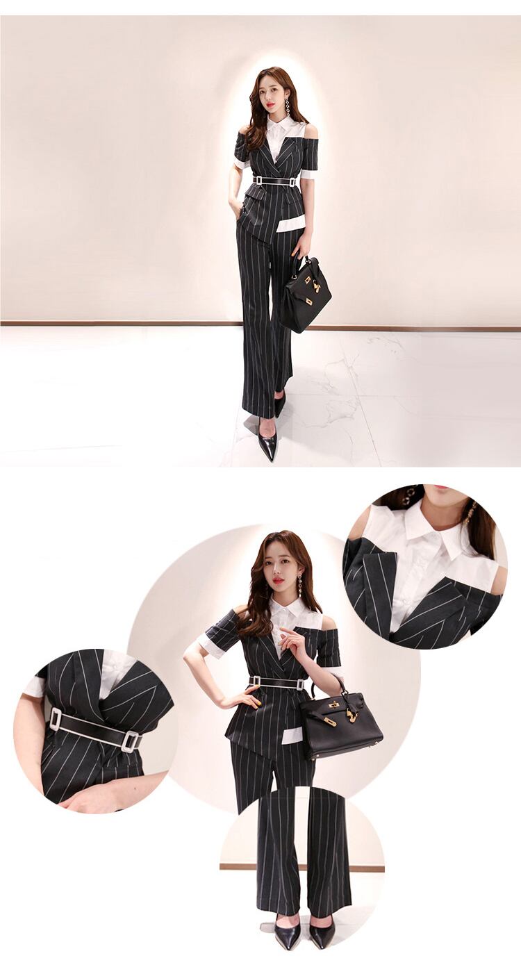 ブラウス サマー 夏物 ハーネス ベルト ストライプ MingJieBiHuo30061198001