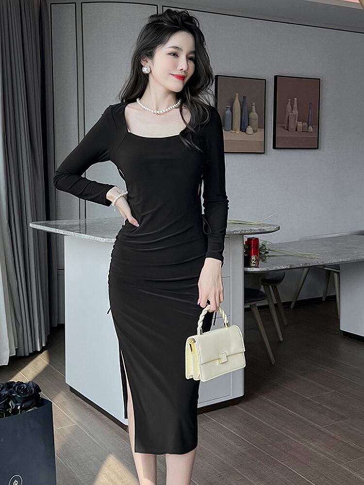 ロング レトロ 長袖 スリム MingJieBiHuo42275164398