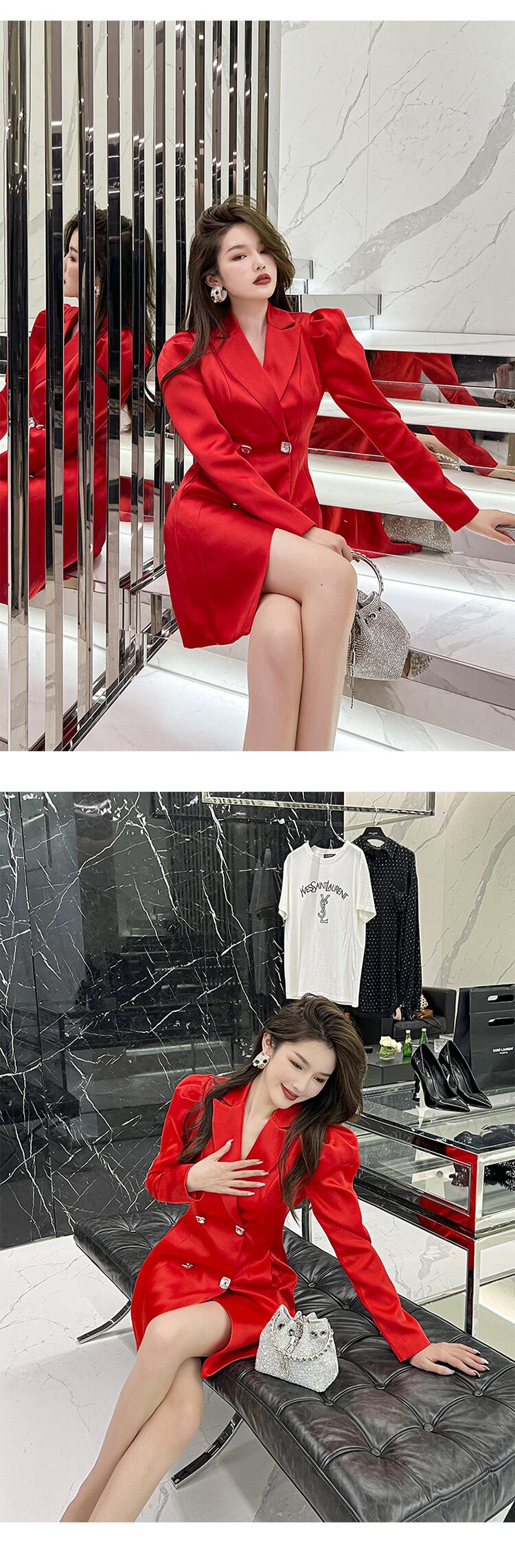 ミニ スプリング 春物 オータム 秋物 ドレス サテン スリム MingJieBiHuo15715967323