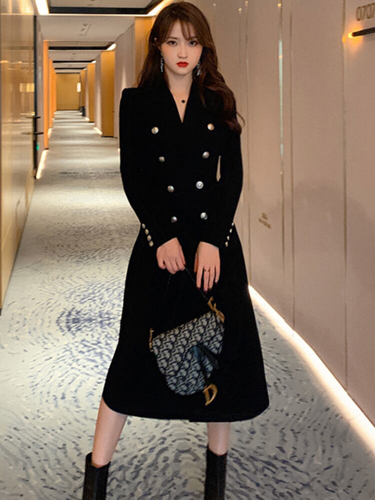 ロング 大人ガーリー スウィート キュート カジュアル エレガント ウィンター 冬物 Aライン ソリッドカラー ビンテージ 会社 学校 通勤や通学にも MingJieBiHuo93269946839