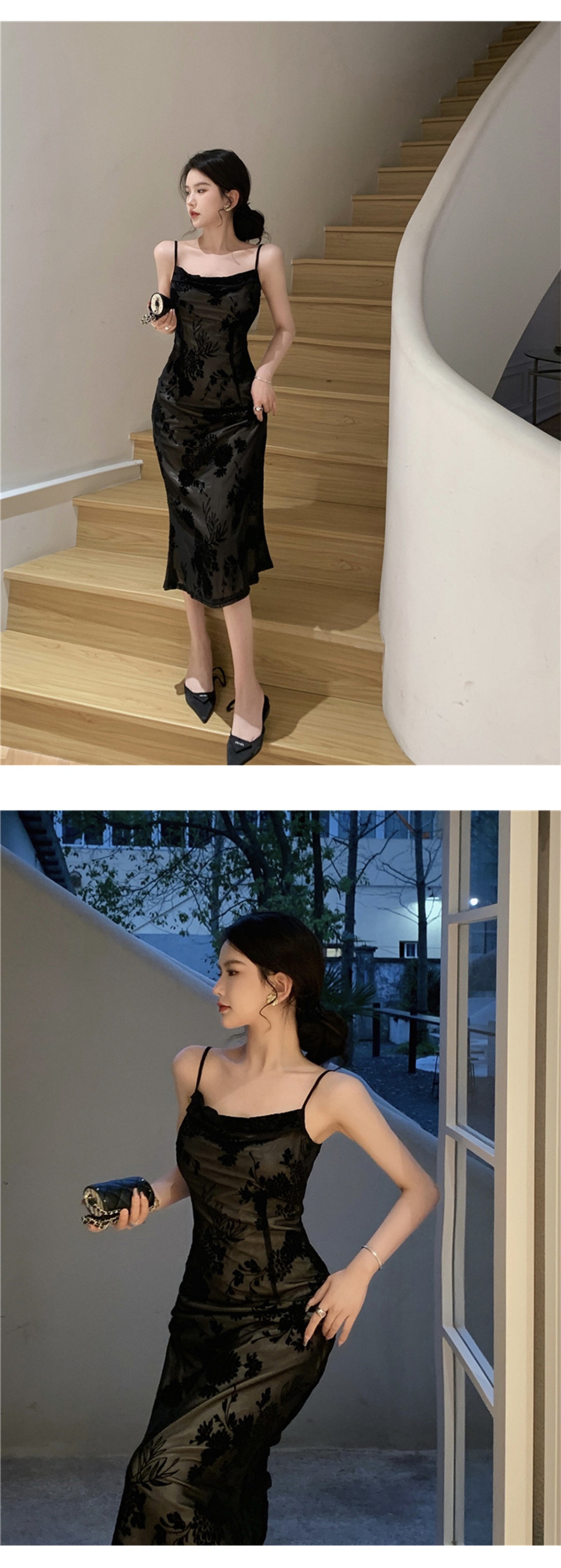 ブラック レトロ サマー 夏物 花柄 スリム MingJieBiHuo90239545484