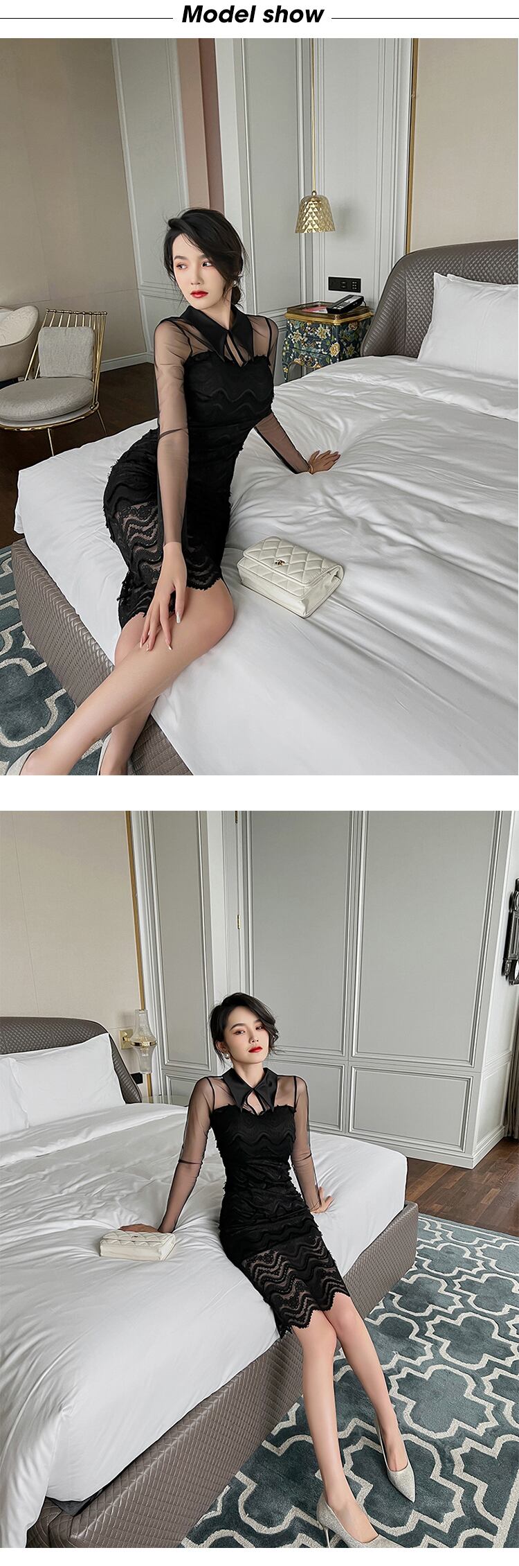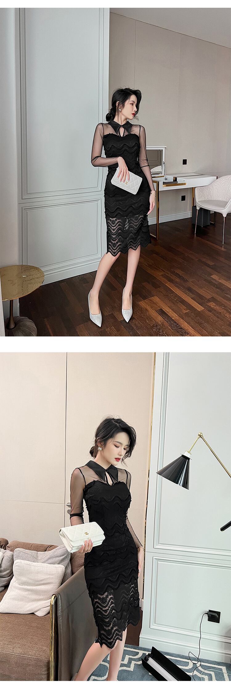 ブラック レース メッシュ ドレス MingJieBiHuo21444776867