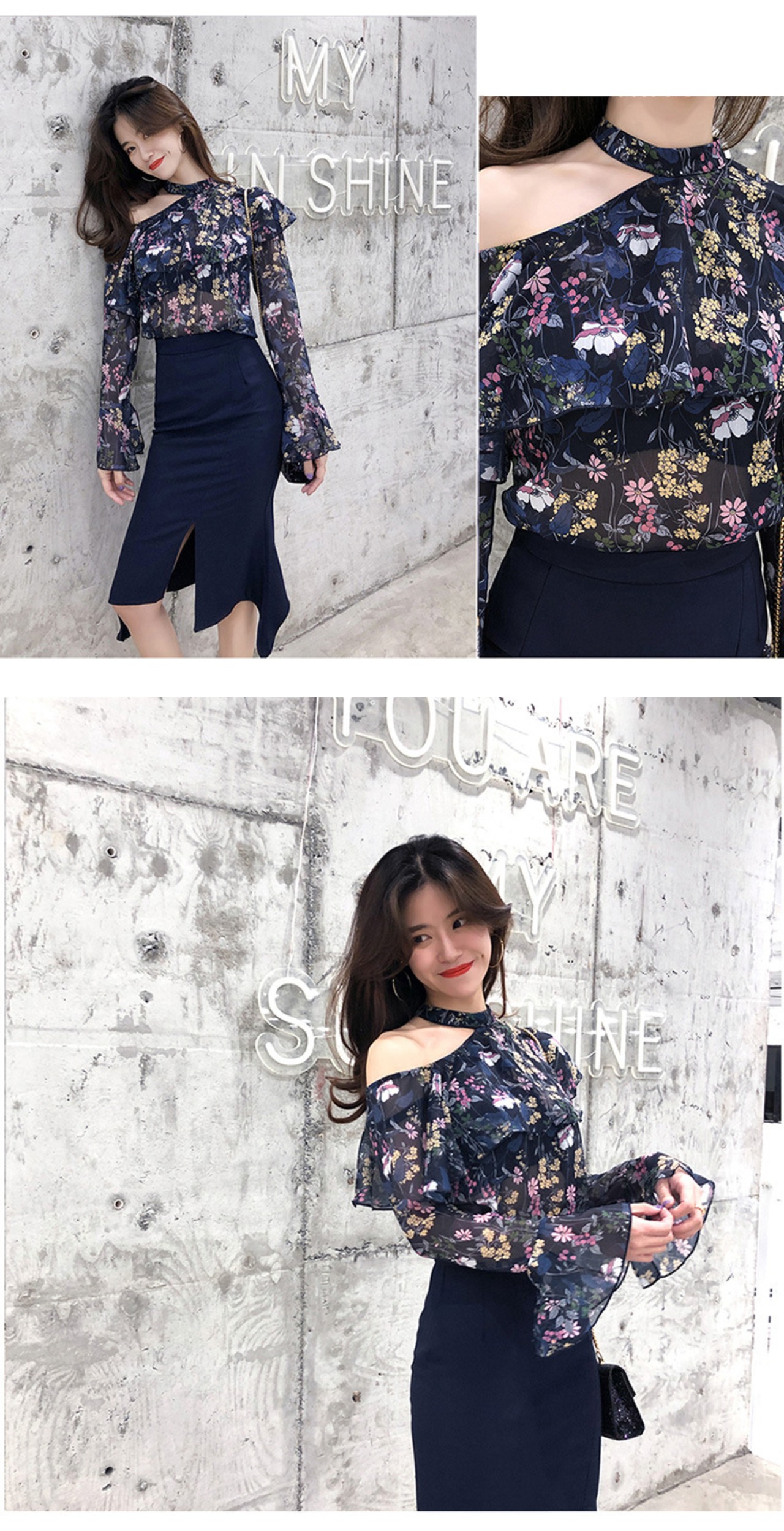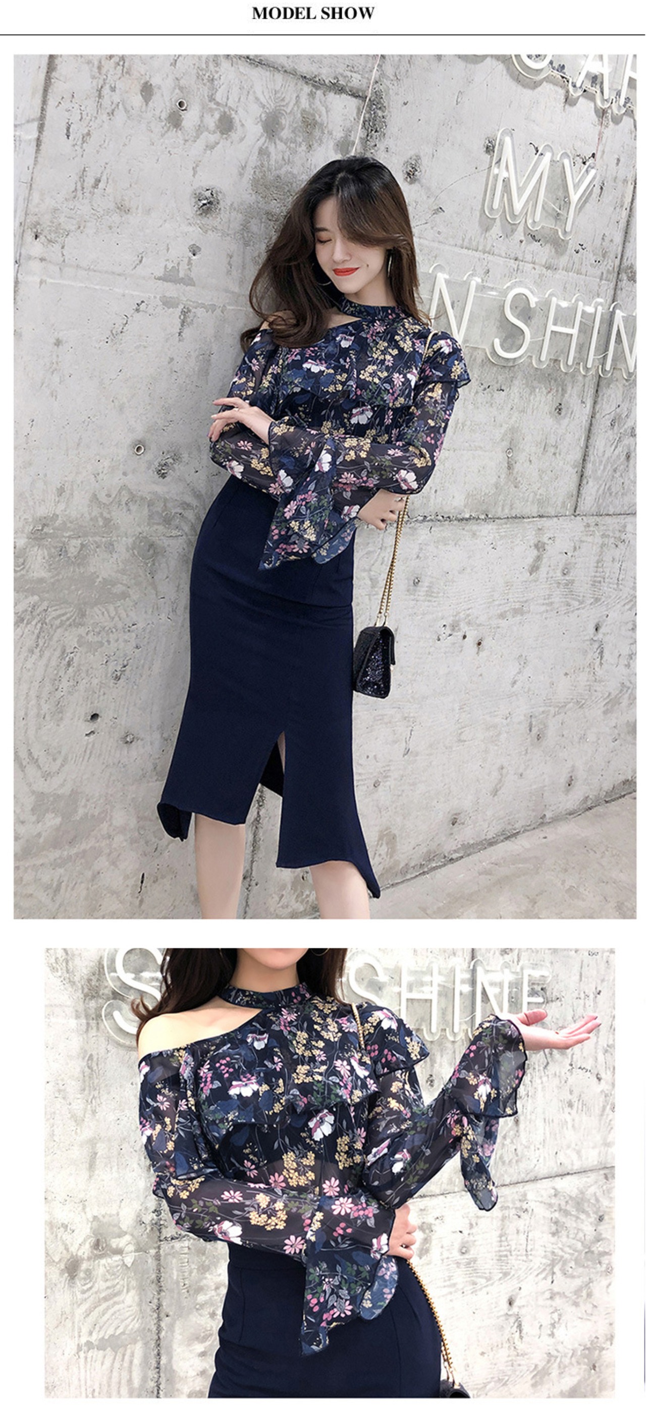 シフォン ブラウス 花柄 スカート スリム MingJieBiHuo30901742229