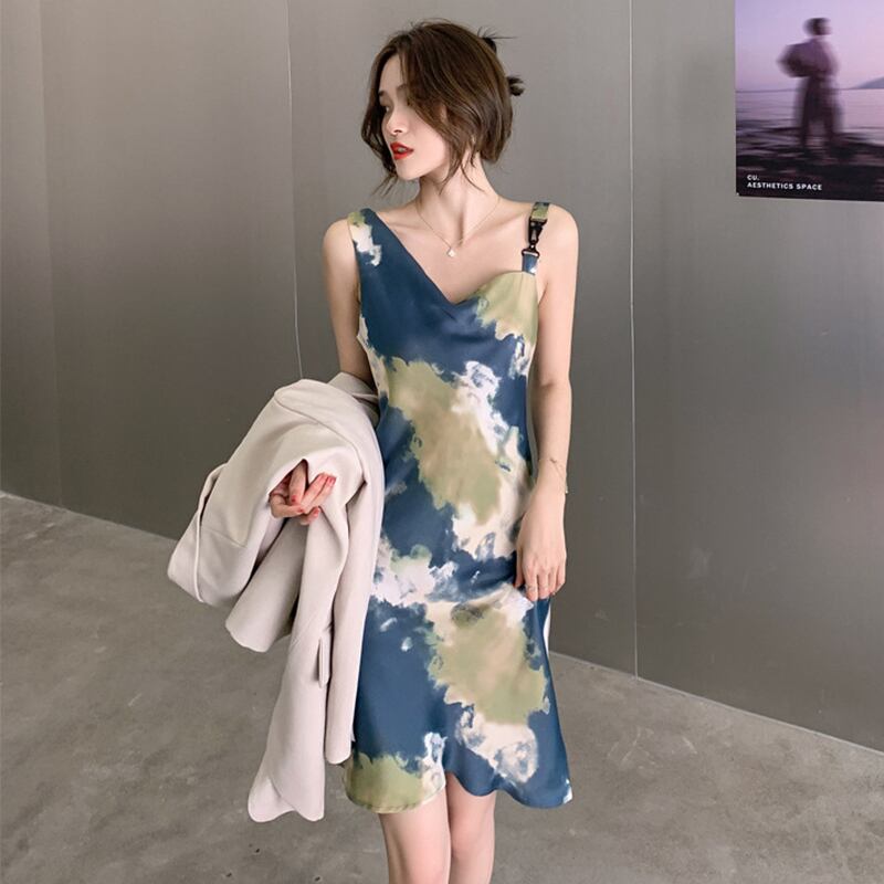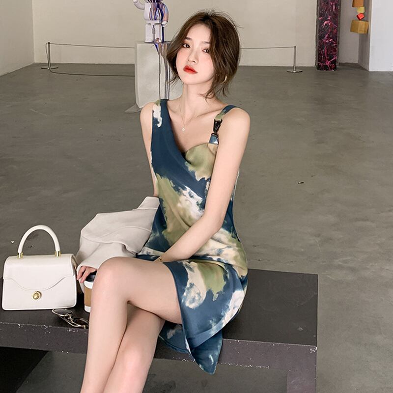 ショート ミニ レトロ ストリート サマー 夏物 ノースリーブ サテン MingJieBiHuo16636554026
