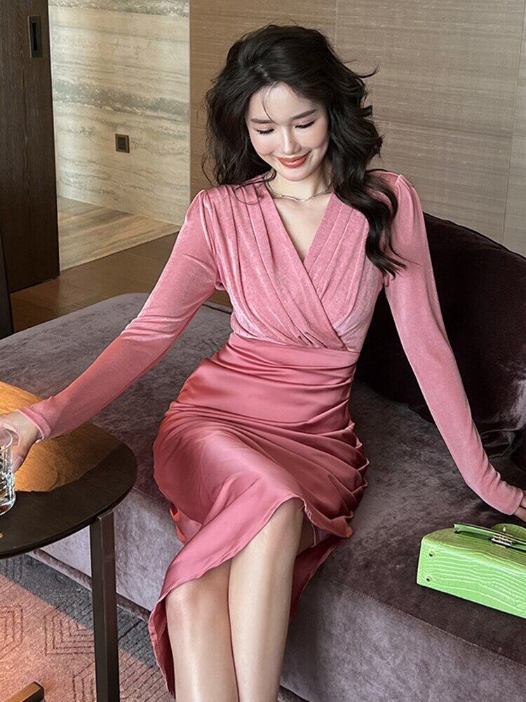 ロング 長袖 スプリング 春物 オータム 秋物 サテン MingJieBiHuo44227718861
