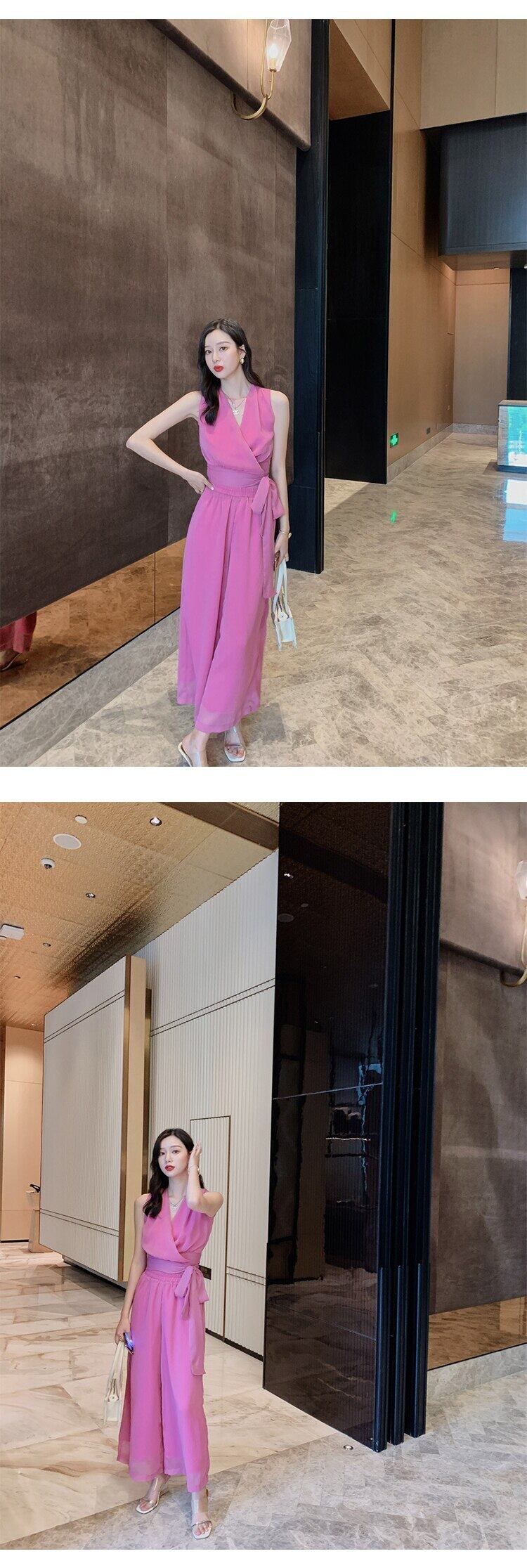 シフォン エレガント サマー 夏物 ノースリーブ Vネック 会社 学校 通勤や通学にも MingJieBiHuo82416820662
