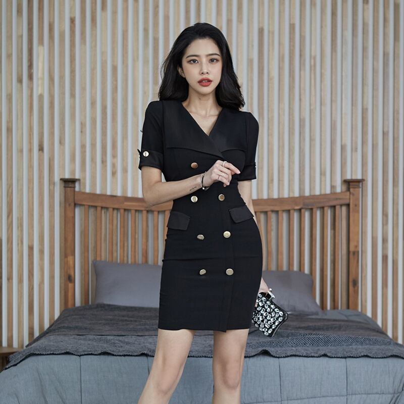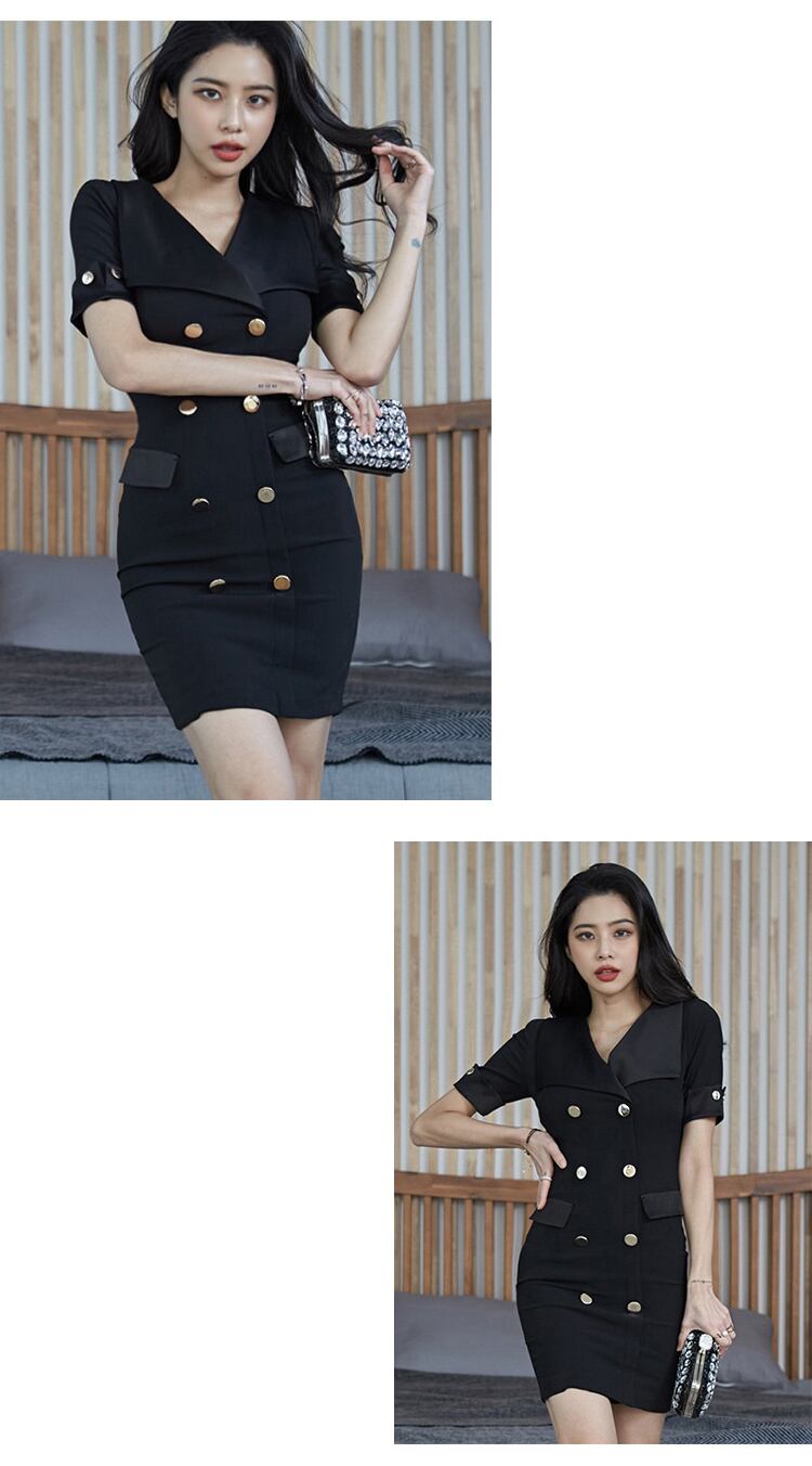 ショート ミニ ブラック 半袖 ハーフスリーブ エレガント Vネック MingJieBiHuo54088657507