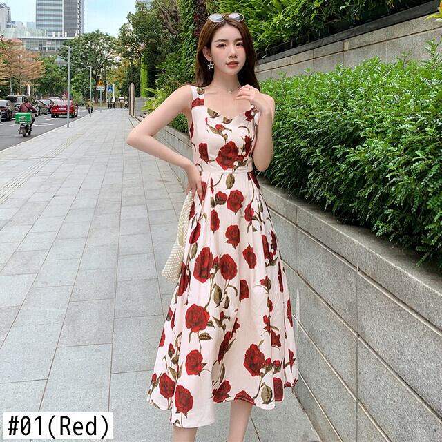 プリーツ サマー 夏物 ビーチ ノースリーブ 花柄 スリム MingJieBiHuo37834045276