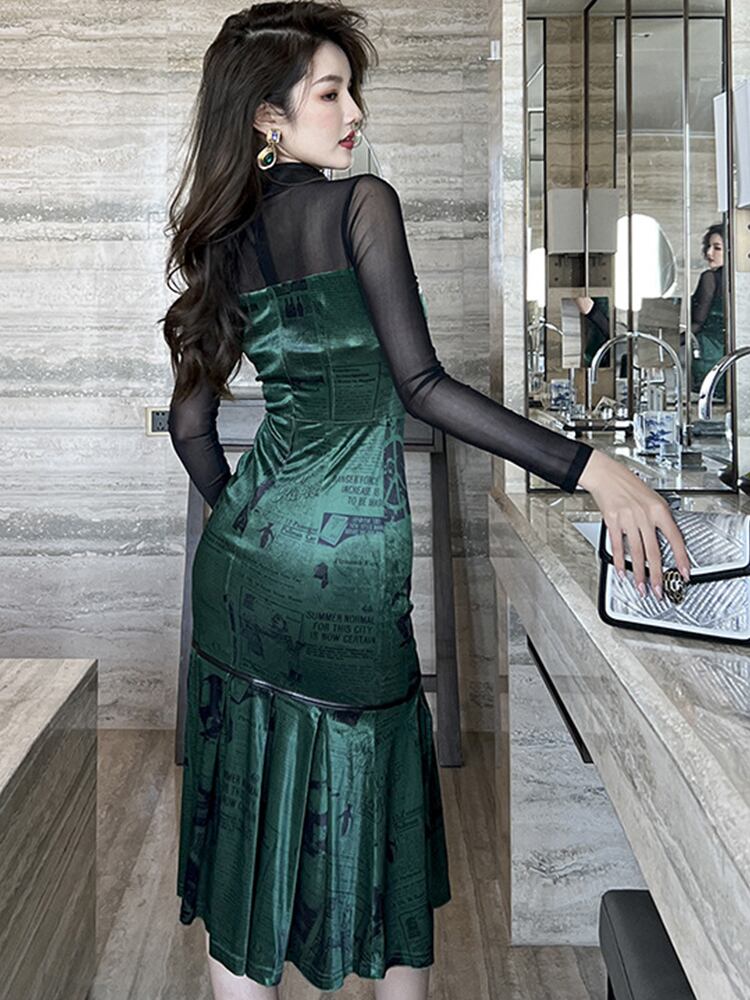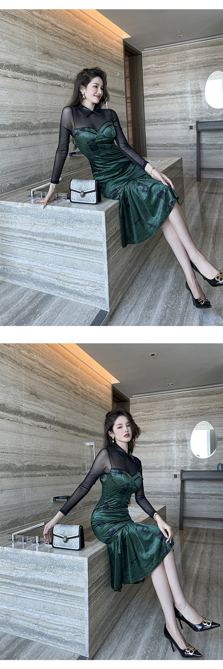 スプリング 春物 オータム 秋物 メッシュ ドレス MingJieBiHuo85774640631