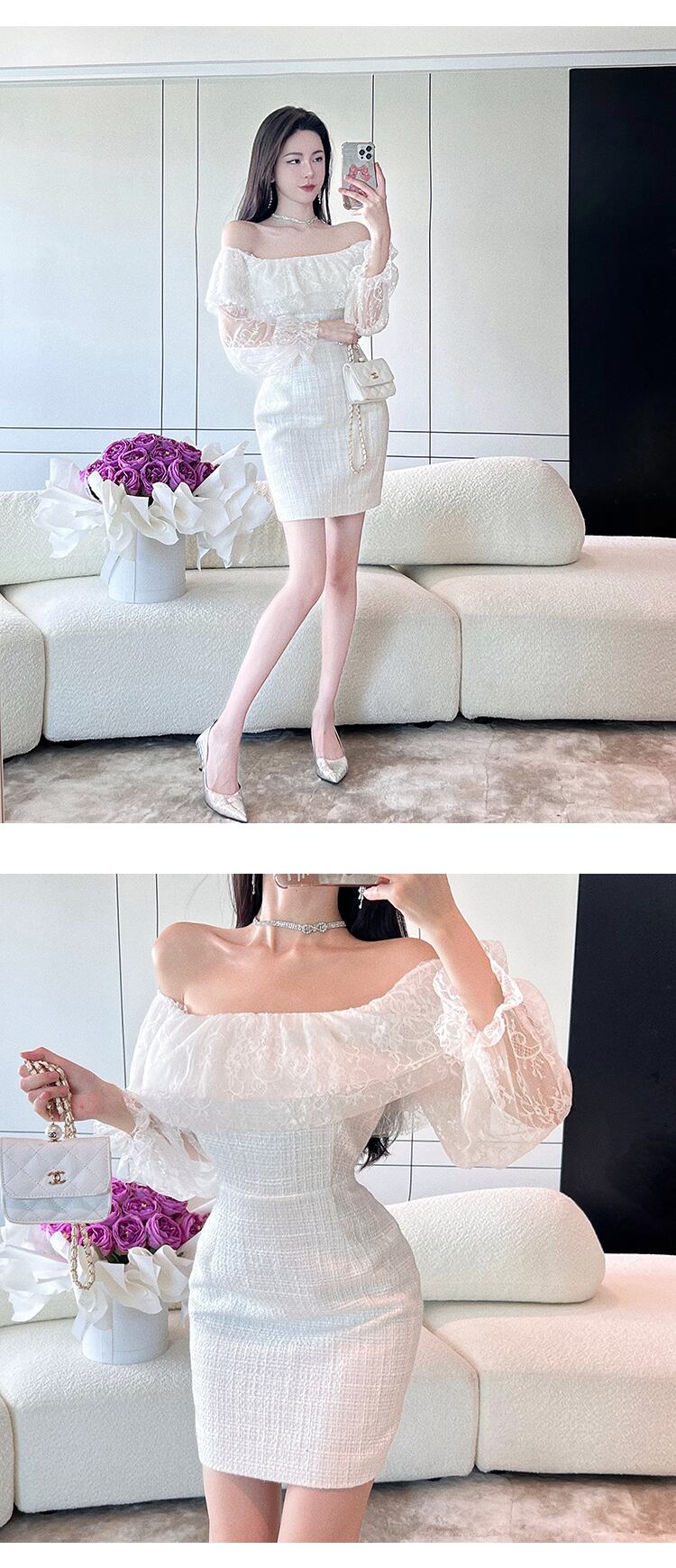 ミニ レース 大人ガーリー スウィート キュート カジュアル スプリング 春物 オータム 秋物 ドレス スリム オフショルダー MingJieBiHuo51861442624