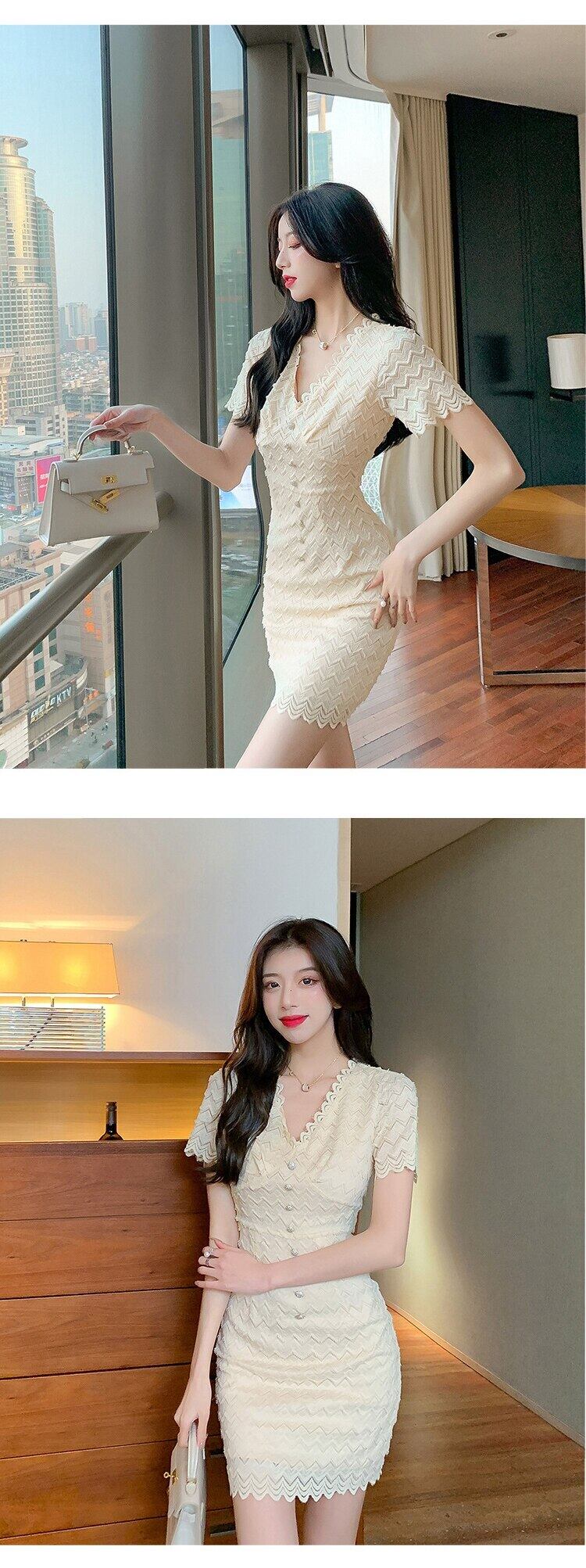 ミニ レース ストリート ドレス Vネック スリム MingJieBiHuo57009418991