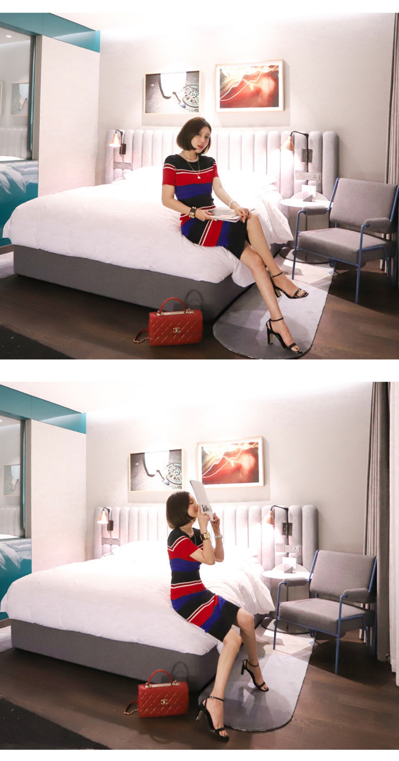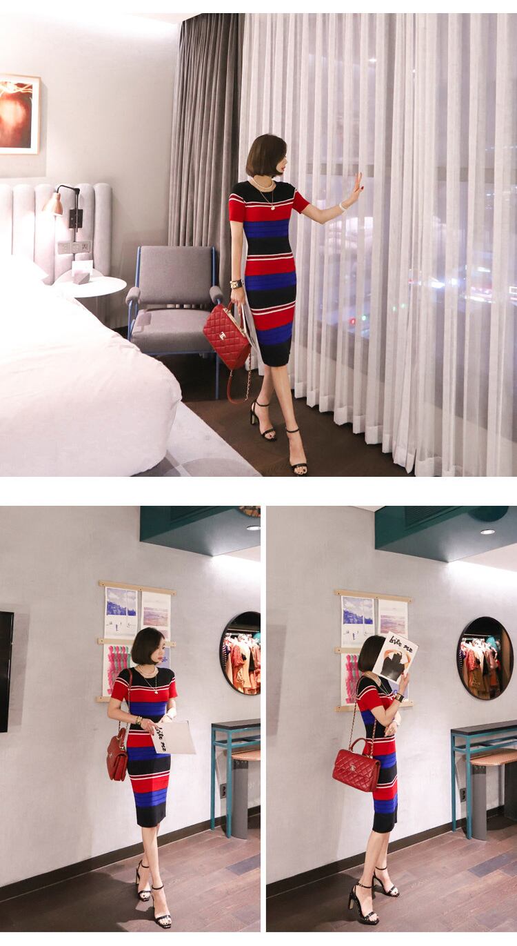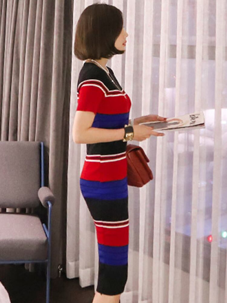 ロング エレガント ストライプ スリム MingJieBiHuo3351837627