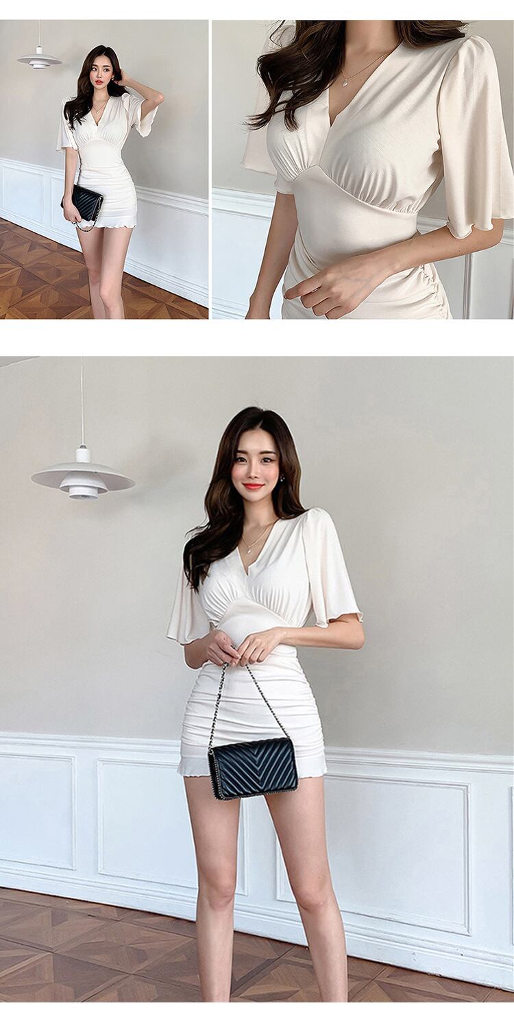 ミニ ホワイト エレガント サマー 夏物 Vネック Aライン 会社 学校 通勤や通学にも MingJieBiHuo62774502865