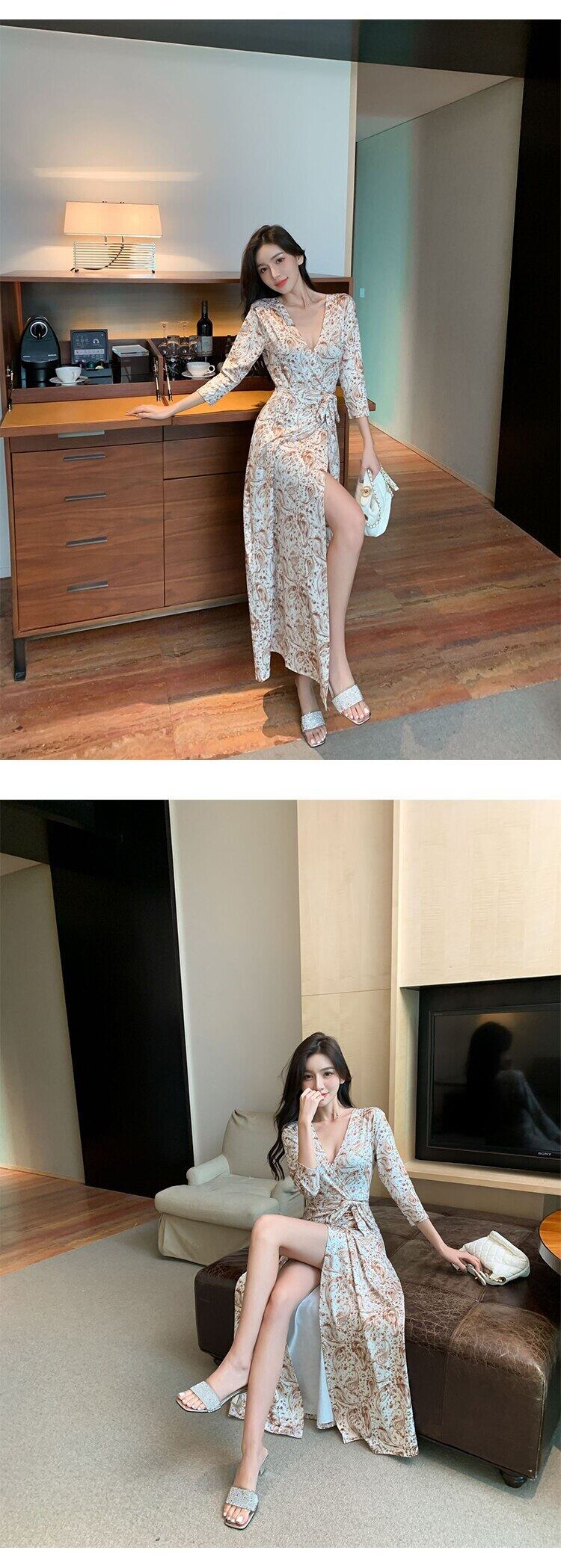 レース ストリート ドレス Vネック レースアップ MingJieBiHuo92741132849