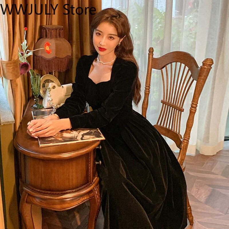 ロング ブラック 長袖 ウィンター 冬物 ビンテージ 会社 学校 通勤や通学にも WWJULY56918319624