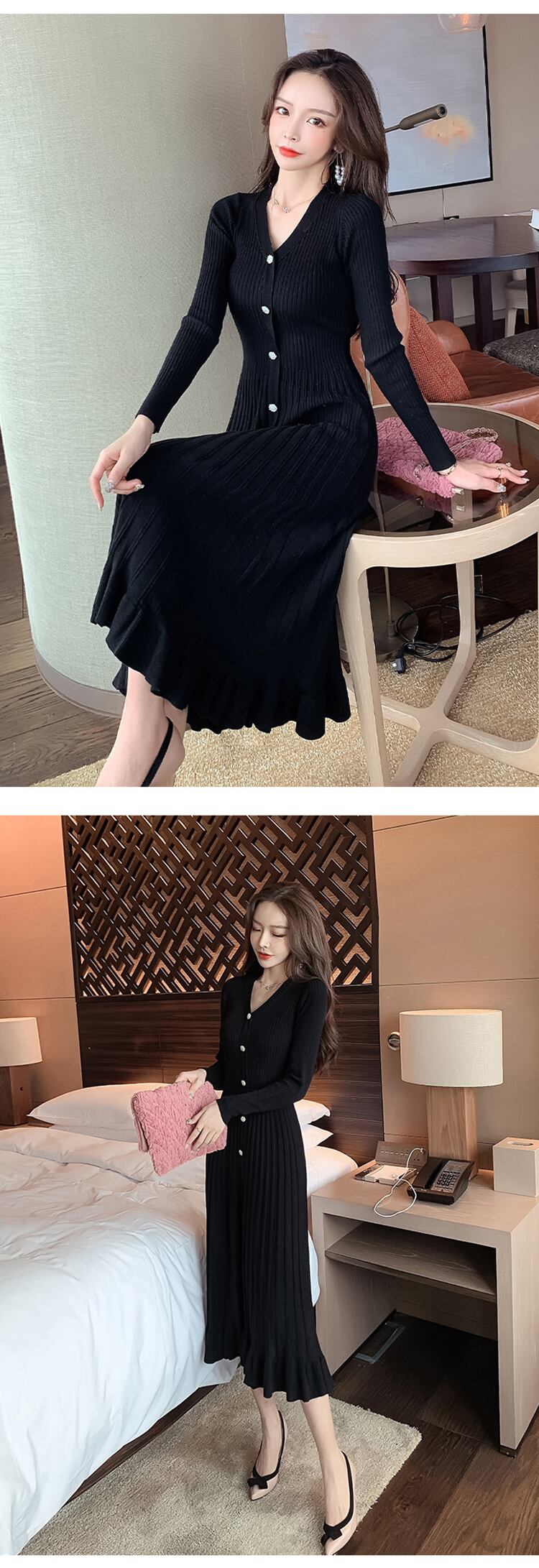 ロング 長袖 エラスティック 伸縮 Vネック ビンテージ MingJieBiHuo38446666208