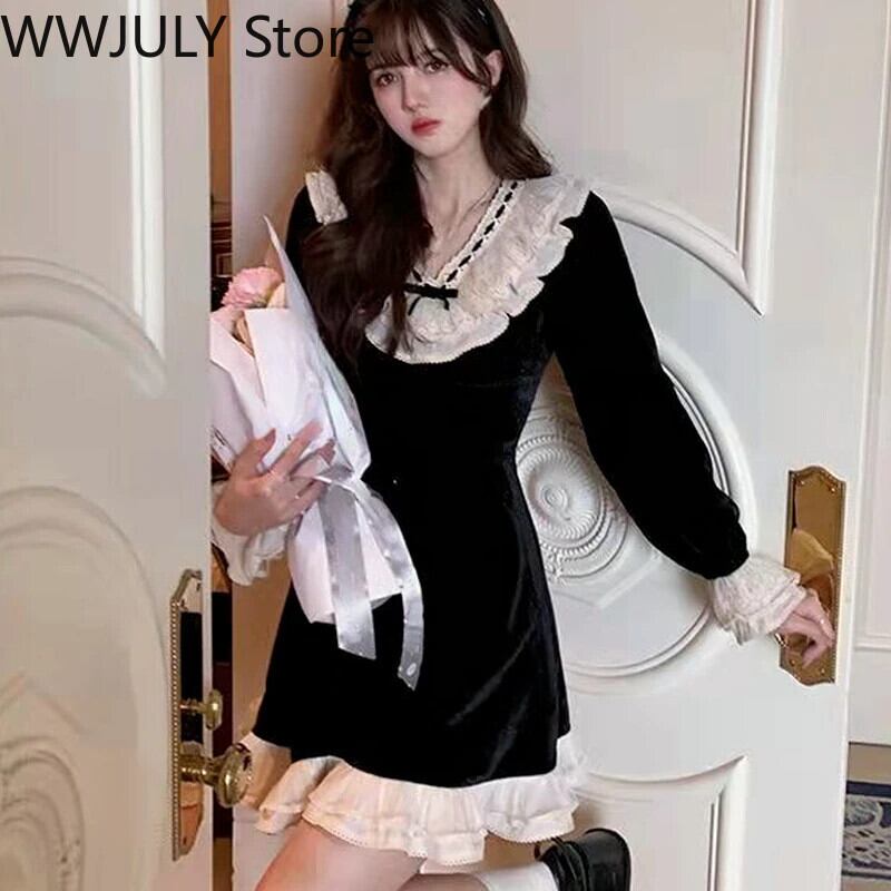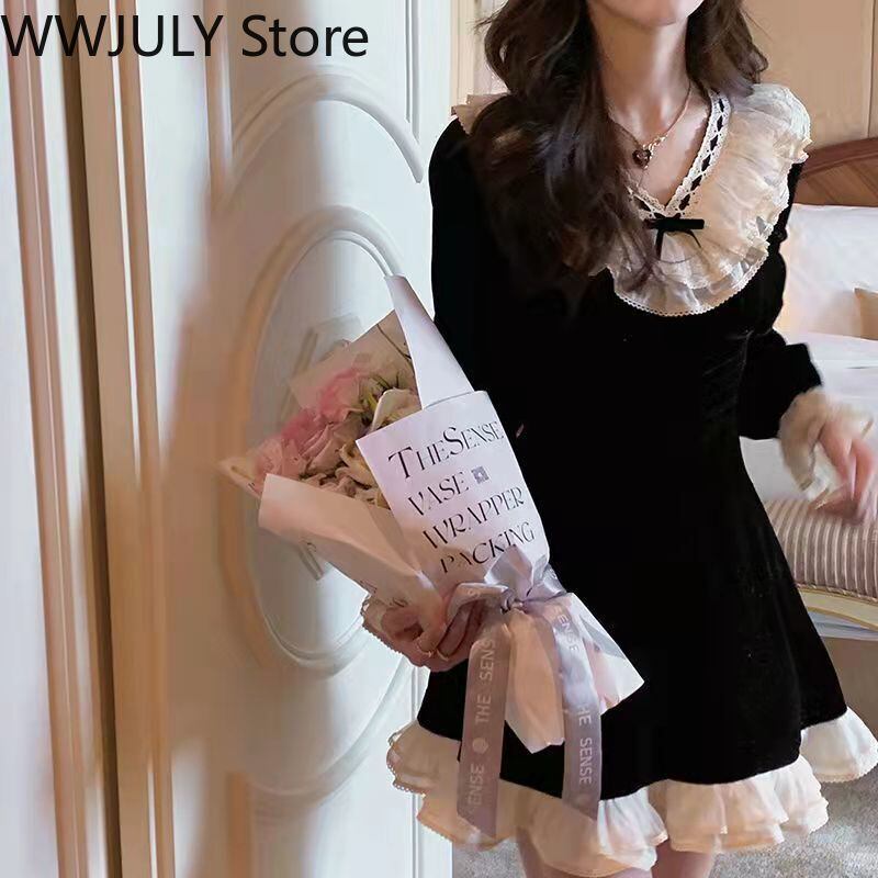 ロング ミニ ブラック 長袖 スプリング 春物 ビンテージ WWJULY85769803344