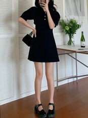 ショート ミニ ブラック 半袖 ハーフスリーブ サマー 夏物 スリム ビンテージ WWJULY2583204551