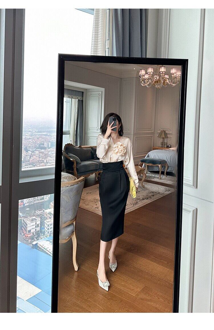 ブラウス スプリング 春物 オータム 秋物 スカート サテン ソリッドカラー 会社 学校 通勤や通学にも MingJieBiHuo47003102669