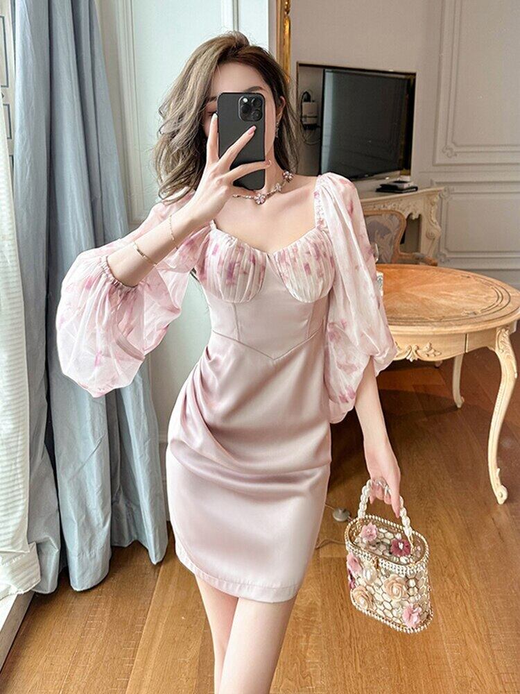 ミニ 大人ガーリー スウィート キュート カジュアル サマー 夏物 ドレス サテン スリム ビンテージ MingJieBiHuo56883143781