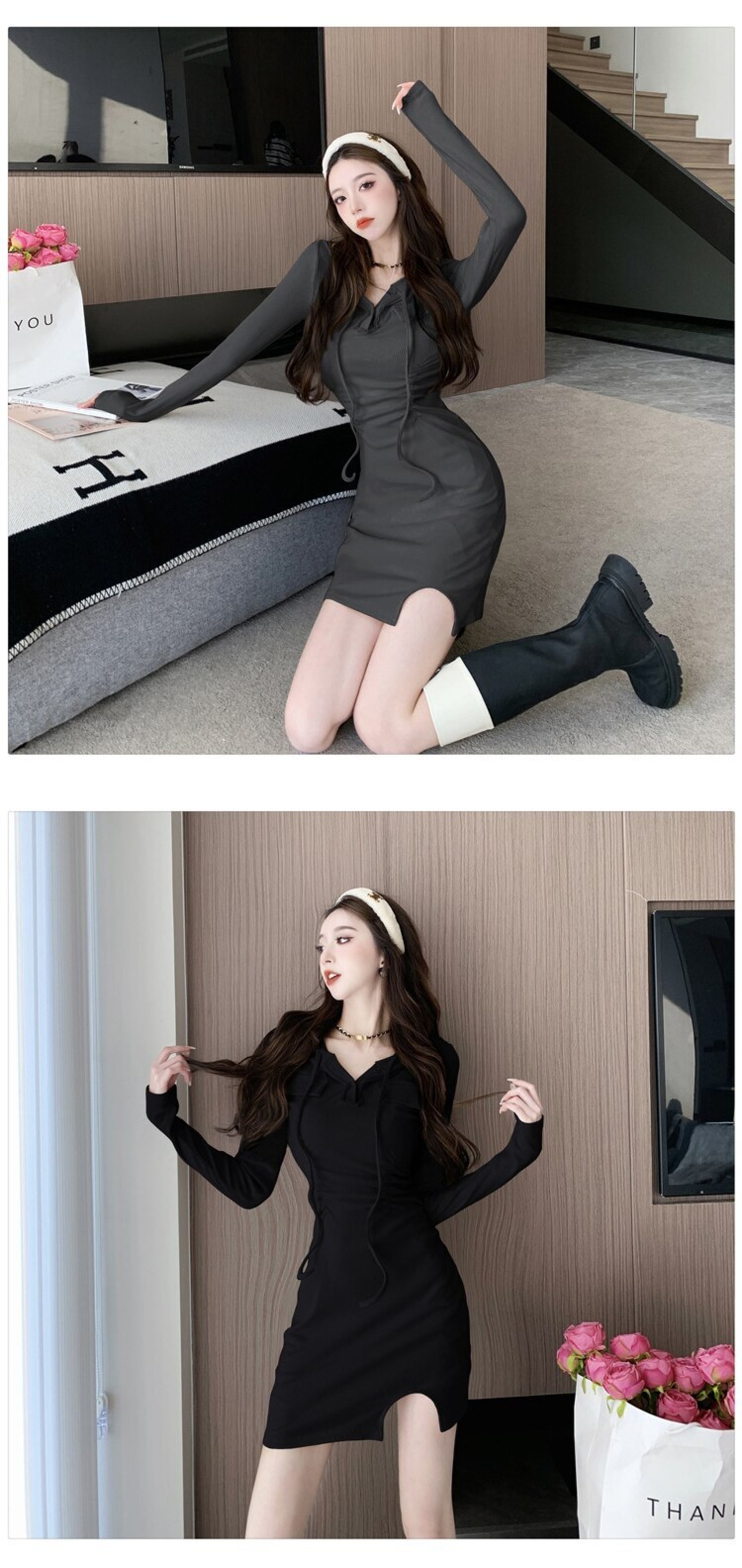 ロング ミニ 長袖 ストリート スプリング 春物 オータム 秋物 ドレス ソリッドカラー MingJieBiHuo68748241348