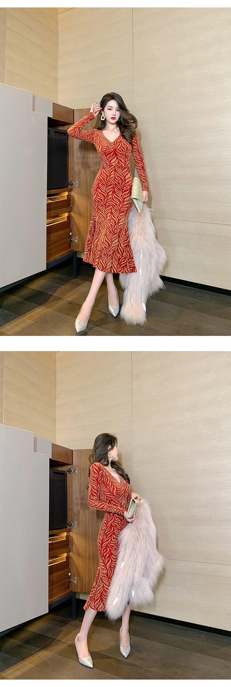 レトロ ストリート ビーチ Vネック シルク MingJieBiHuo50405857360