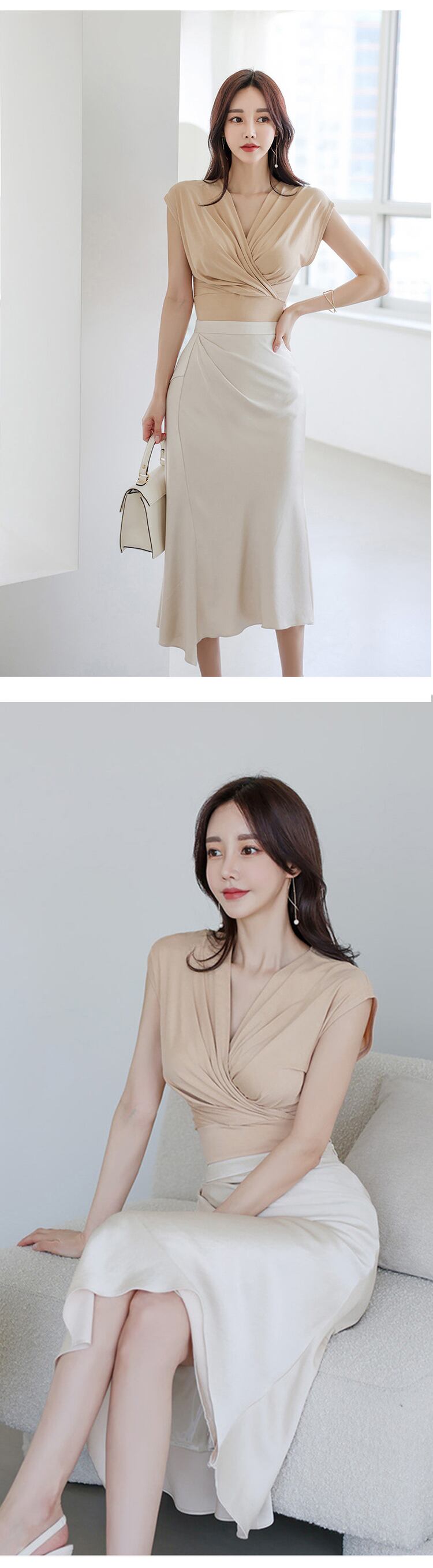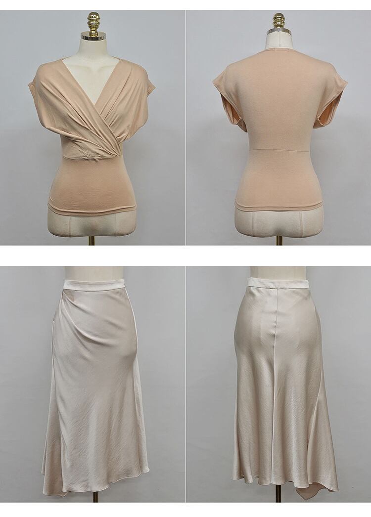 ショート 半袖 ハーフスリーブ ブラウス スカート Vネック ビンテージ MingJieBiHuo70549408330