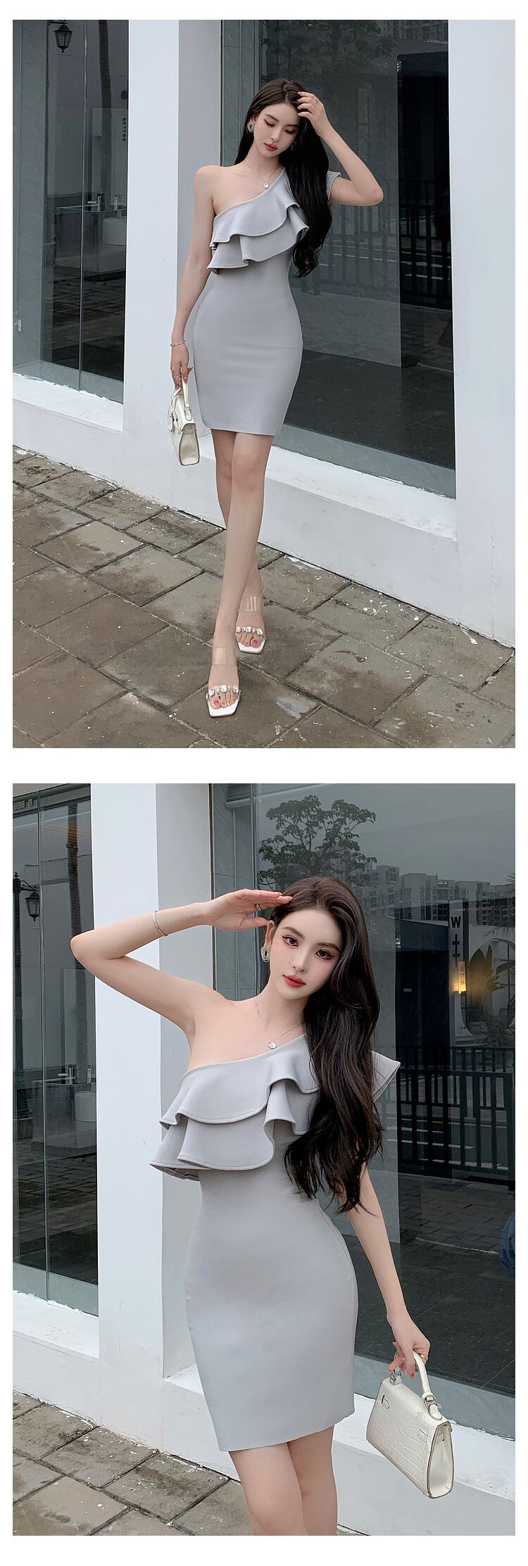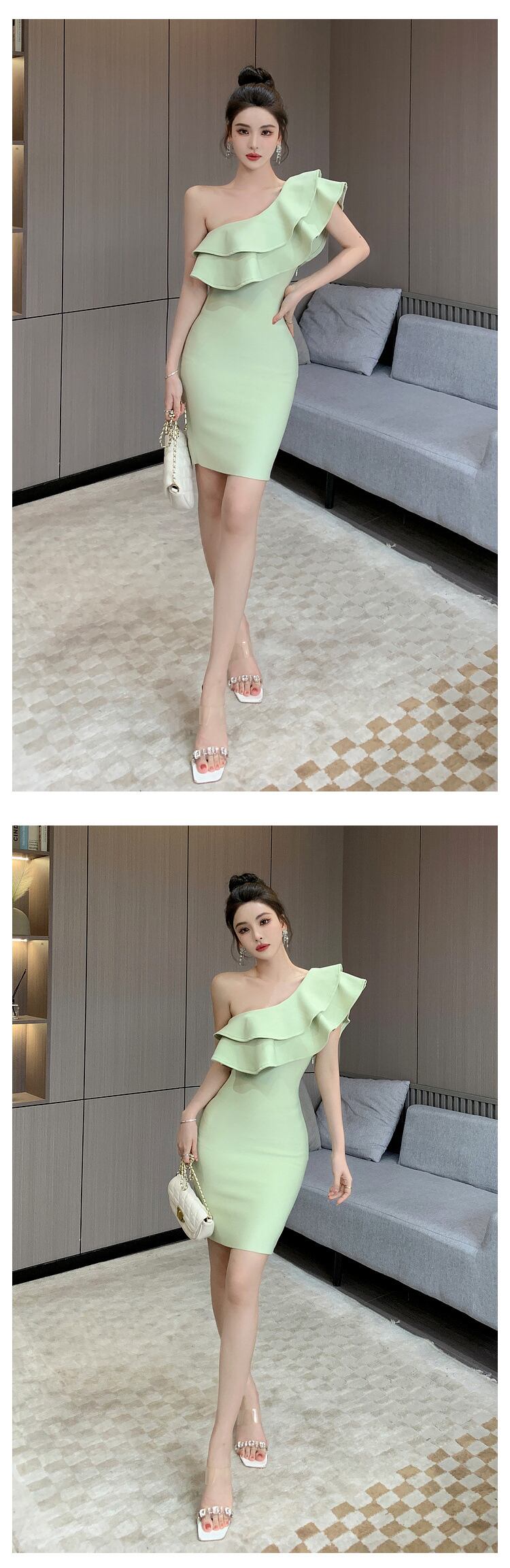 ミニ 大人ガーリー スウィート キュート カジュアル サマー 夏物 ドレス スリム ソリッドカラー MingJieBiHuo52714409423