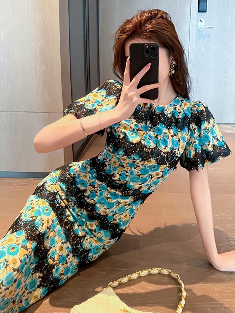 レトロ サマー 夏物 ドレス サテン スリム MingJieBiHuo64621103705