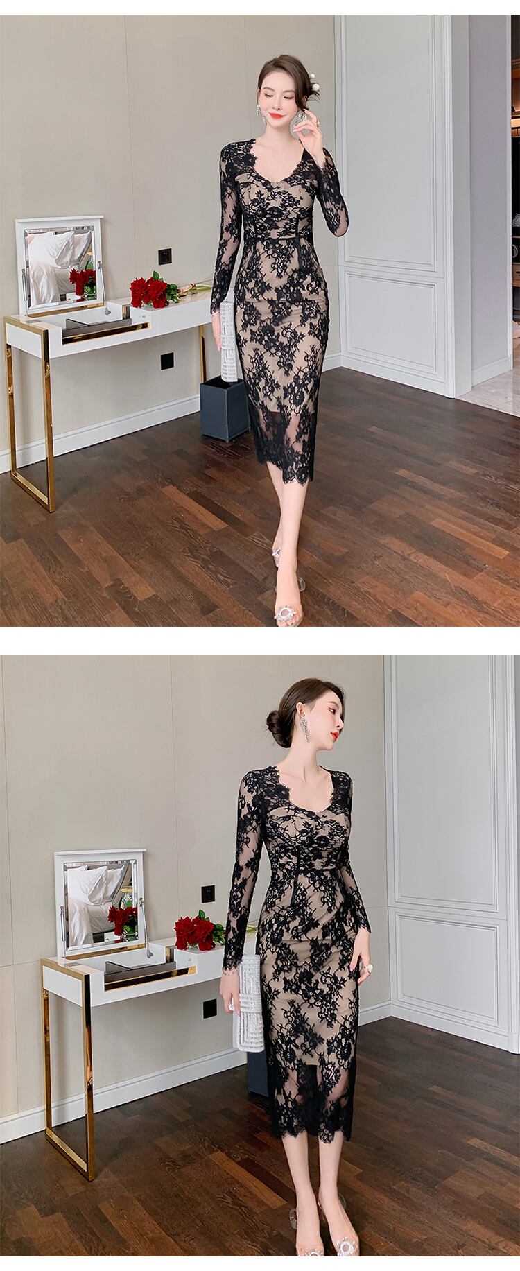 ロング レース 長袖 刺繍 スクウェア ビンテージ MingJieBiHuo27005020543