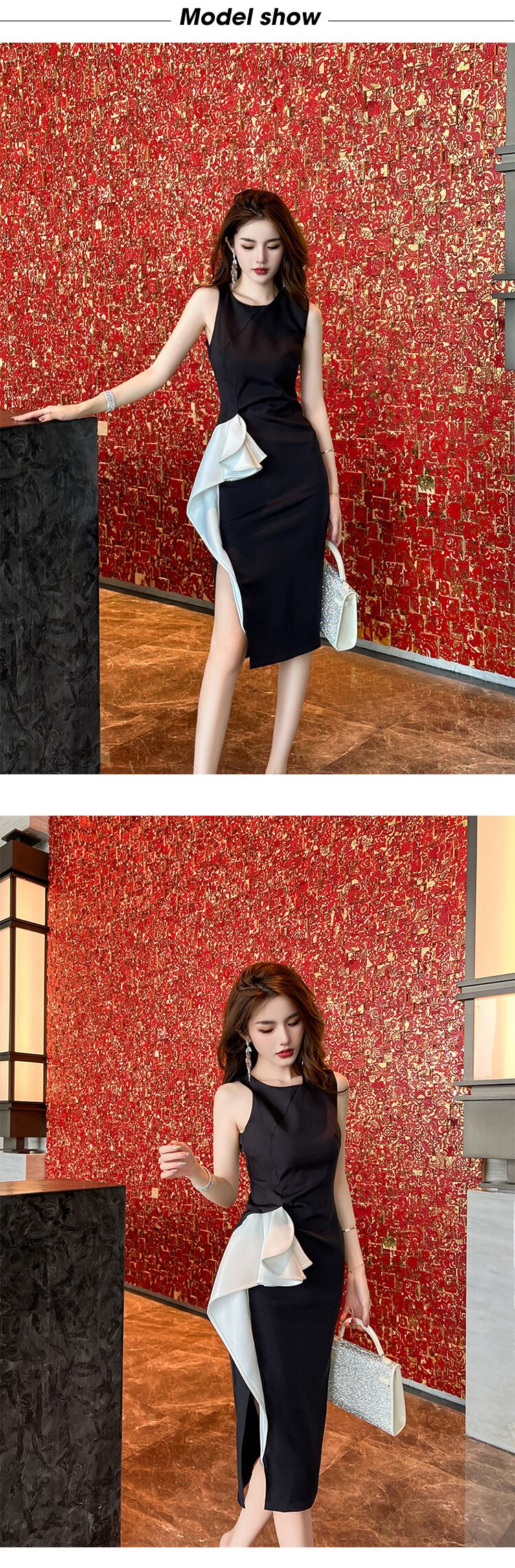 サマー 夏物 ドレス ノースリーブ Oネック スリム MingJieBiHuo89546440643