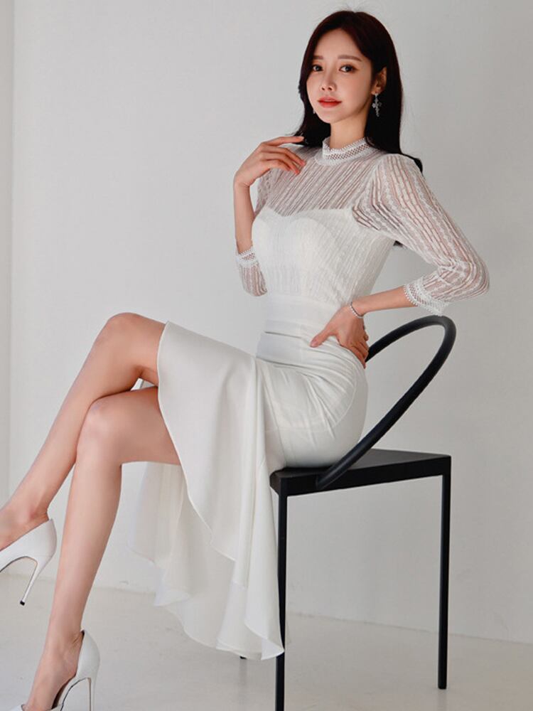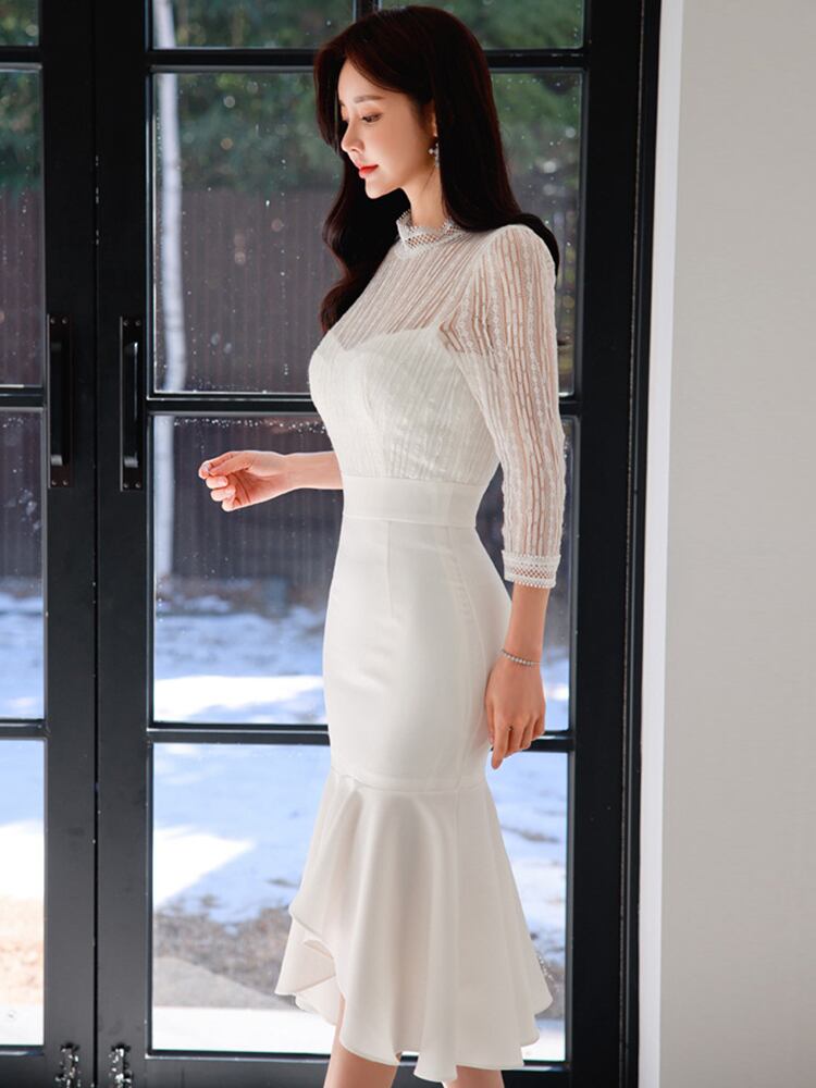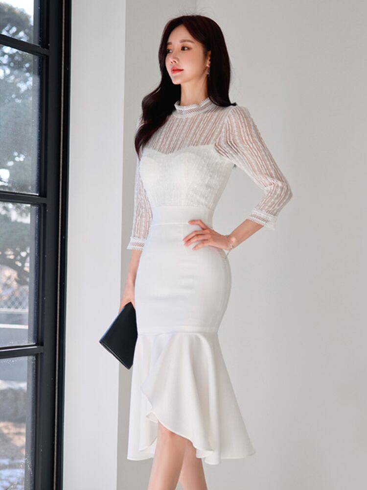 レース サマー 夏物 ドレス スリム 会社 学校 通勤や通学にも MingJieBiHuo20810431283