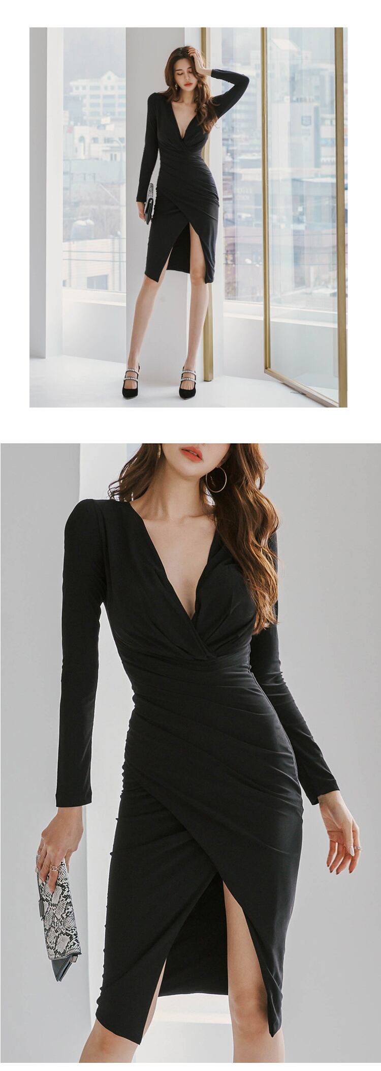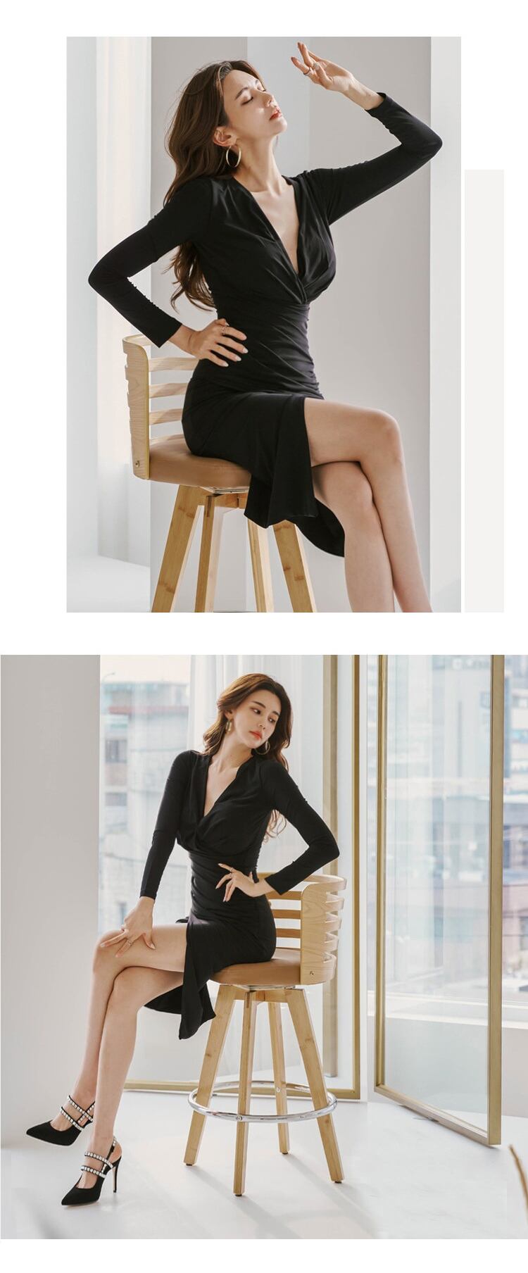 スプリング 春物 オータム 秋物 ドレス Vネック スリム 会社 学校 通勤や通学にも MingJieBiHuo95291126025