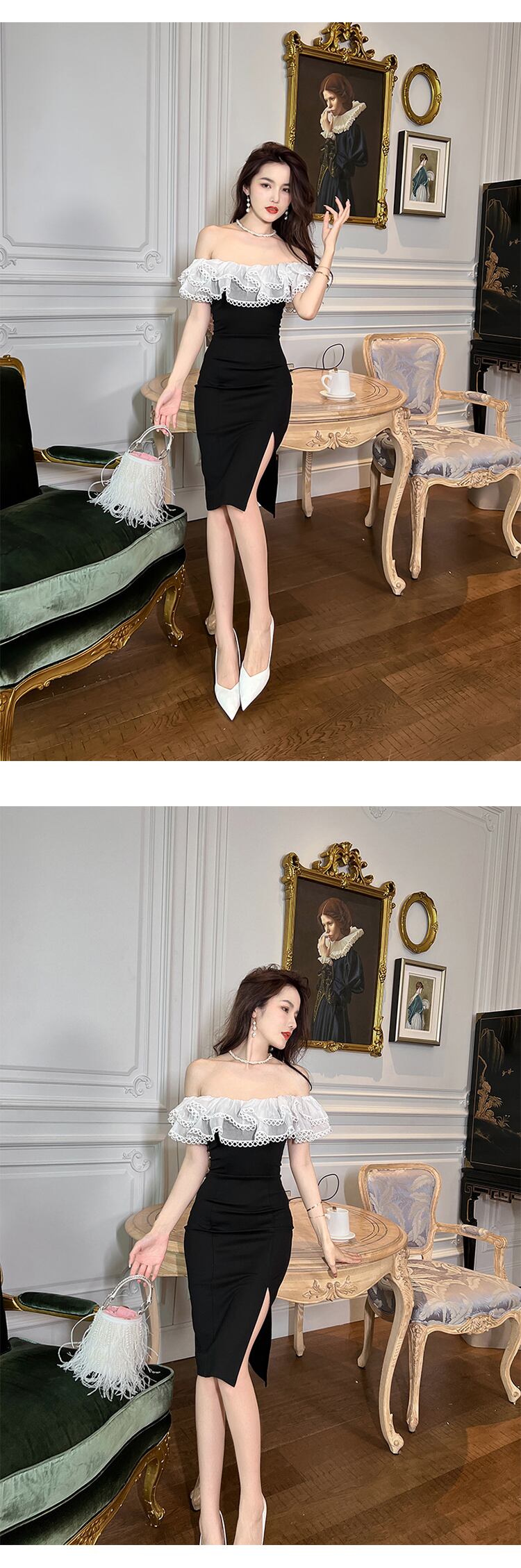 レトロ サマー 夏物 スリム オフショルダー MingJieBiHuo48522563564