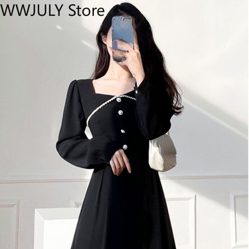 ロング ブラック 長袖 大人ガーリー スウィート キュート カジュアル オータム 秋物 ビンテージ 会社 学校 通勤や通学にも WWJULY80234613118