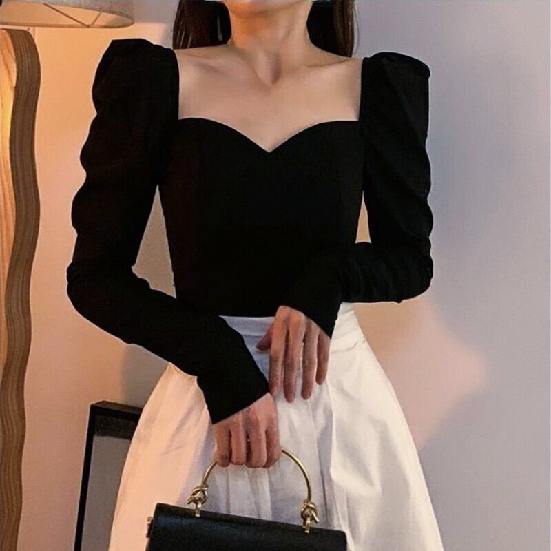 ロング ブラック 長袖 シャツ ブラウス オータム 秋物 ピュア ビンテージ 会社 学校 通勤や通学にも WWJULY48468366561