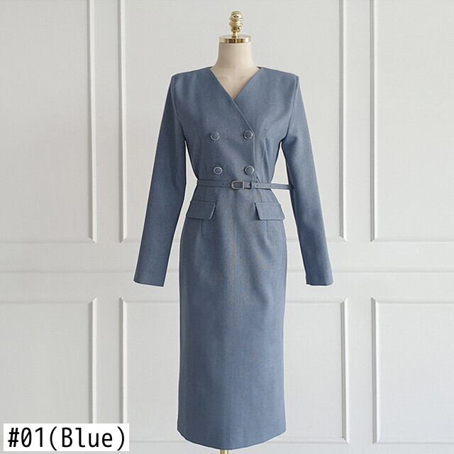 ストリート スプリング 春物 オータム 秋物 ドレス Vネック スリム 会社 学校 通勤や通学にも MingJieBiHuo75888528905