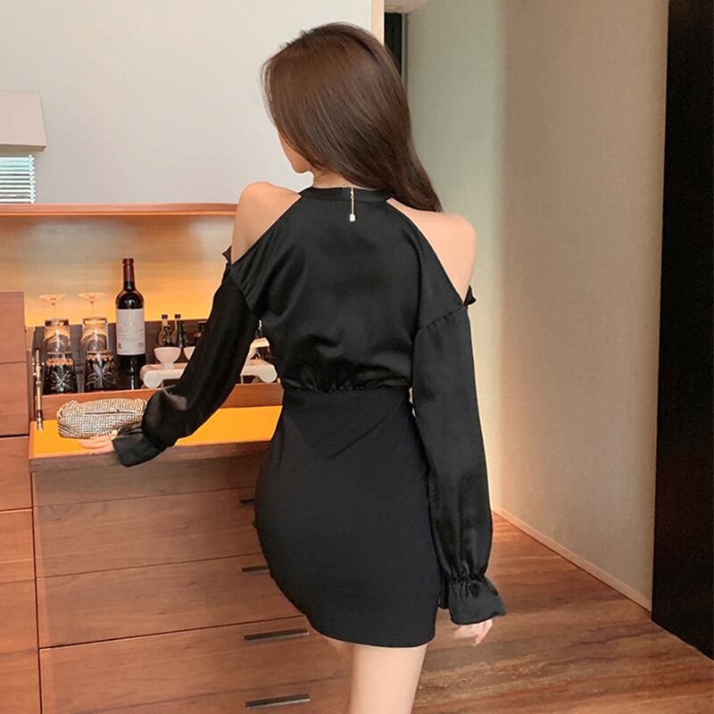 ショート ミニ ブラック レトロ ビーチ オフショルダー MingJieBiHuo8228146547