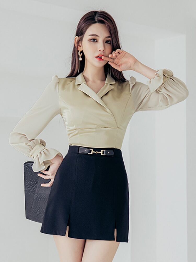 ミニ ブラウス スカート サテン スリム 会社 学校 通勤や通学にも MingJieBiHuo67546082497