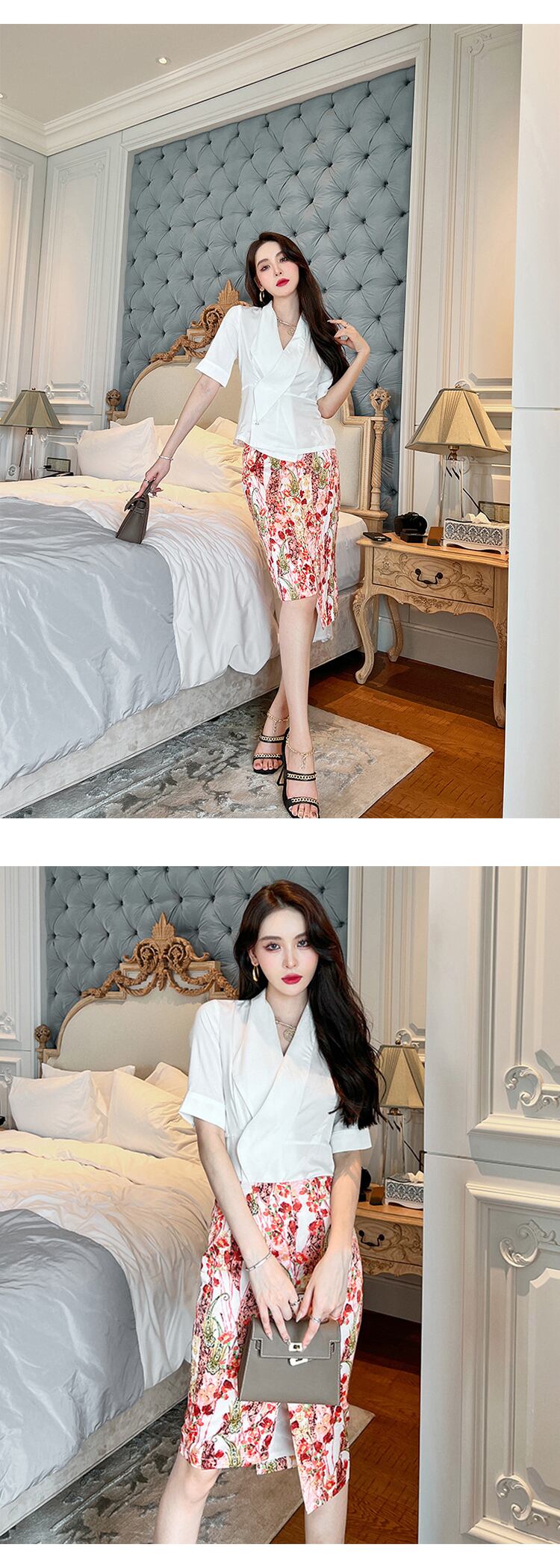 ショート 半袖 ハーフスリーブ ブラウス スカート サテン スリム MingJieBiHuo30013604802