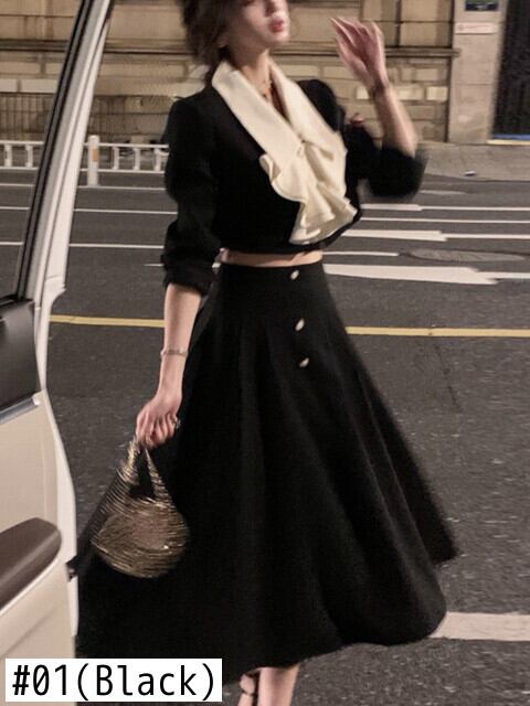 ロング ブラック レトロ 長袖 オータム 秋物 スカート スリム 会社 学校 通勤や通学にも WWJULY23056323036
