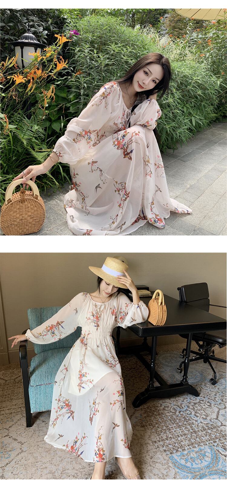 シフォン 大人ガーリー スウィート キュート カジュアル ビーチ 花柄 Oネック ビンテージ MingJieBiHuo39803230190