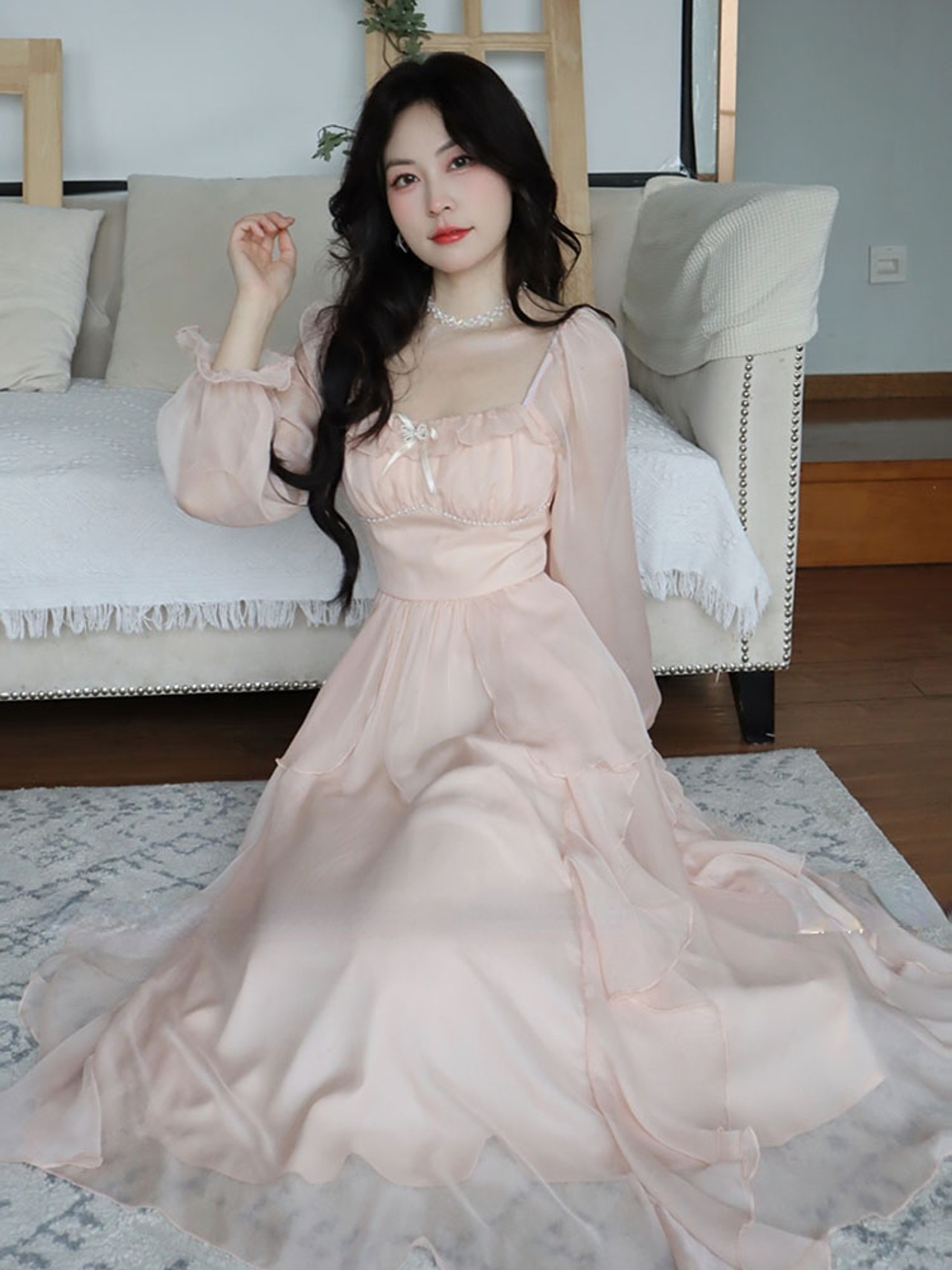 ロング シフォン 長袖 サマー 夏物 ピュア 会社 学校 通勤や通学にも WWJULY31632086989