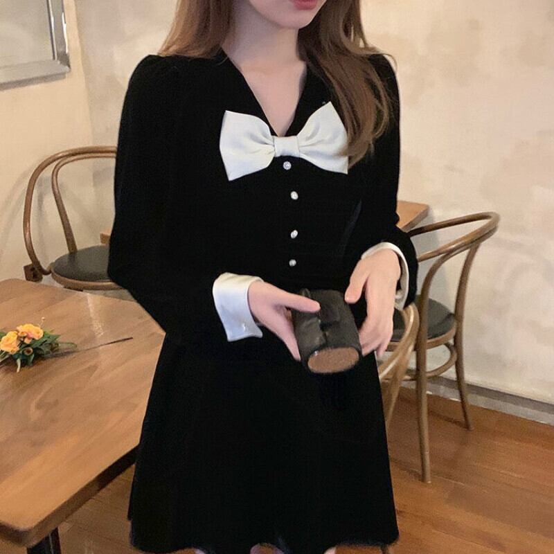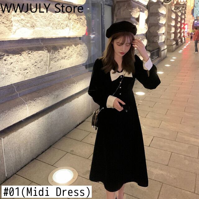ロング ブラック リボン 長袖 スプリング 春物 ビンテージ WWJULY6556231044