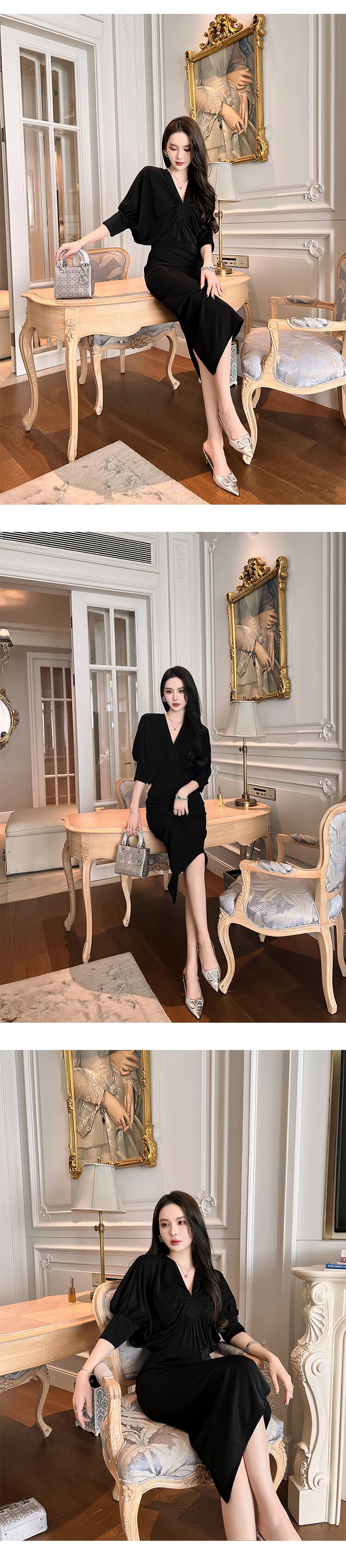 スプリング 春物 オータム 秋物 ドレス Vネック ビンテージ MingJieBiHuo95396432854